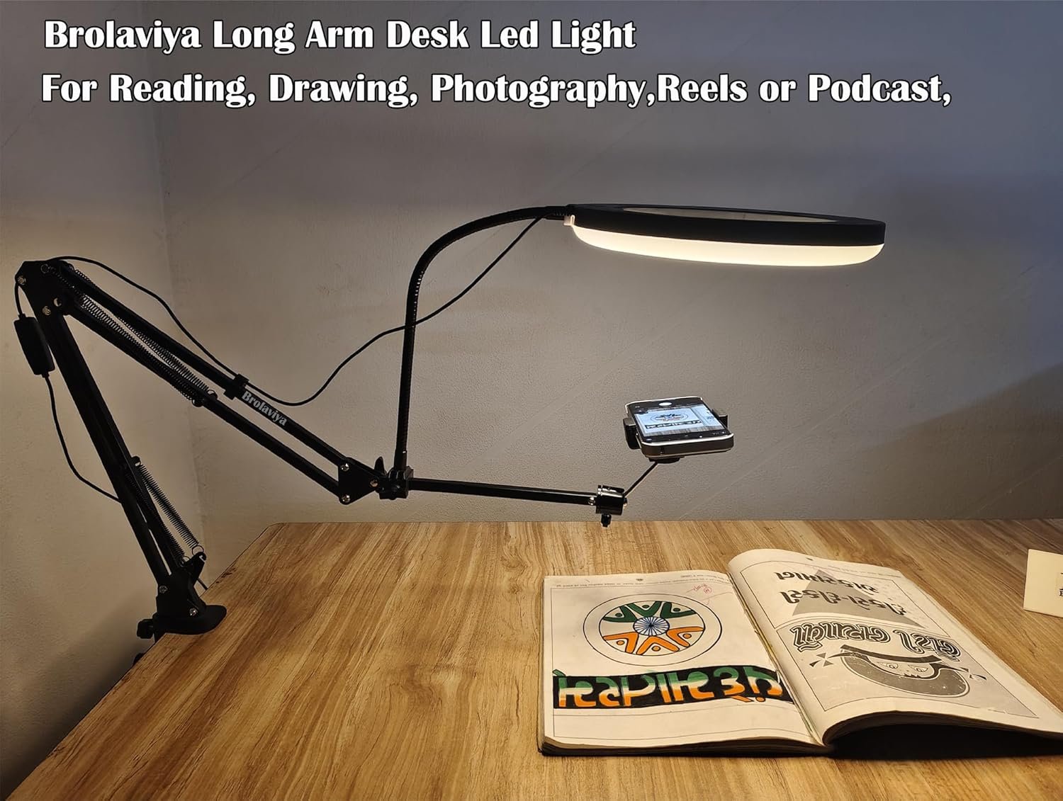 Brolaviya’s new design with flexible clip hose wire allows you to keep your mobile over or under the light with no shadow on video recording.