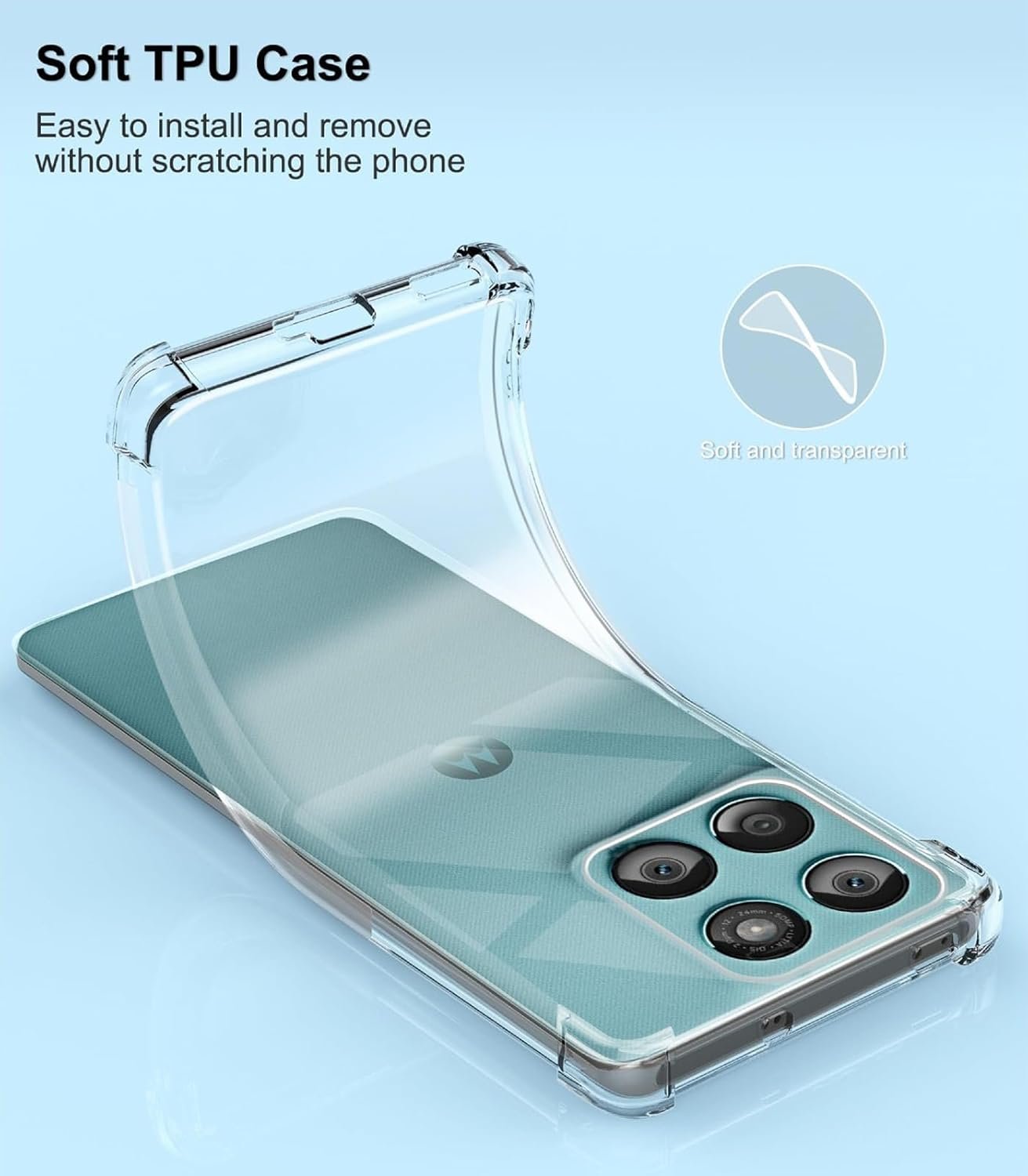 Ultra Transparent Case—Motorola Edge 60 Fusion crystal-clear case shows off the original beauty of the phone while providing extra protection. Its high quality TPU material can ensure crystal clear transparency and prevent yellowing. The micro-dot design prevents the sticky “wet” feeling and gives your phone a clean look.