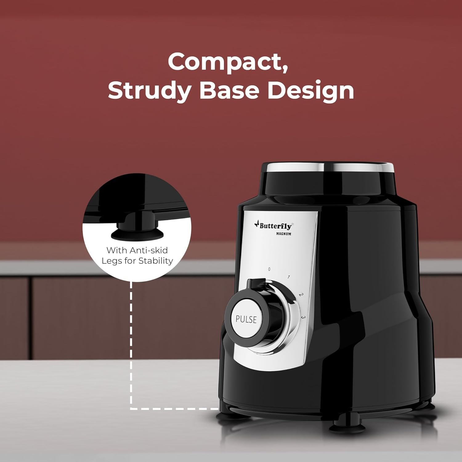 Butterfly Magnum 1.2HP Mixer Grinder with 4 Jars | 100% Copper Motor | 3 Stainless Steel Multipurpose Jars and 1 Juicer Jar | ABS Body | Handsfree Operation | Lifetime Motor Warranty| Black