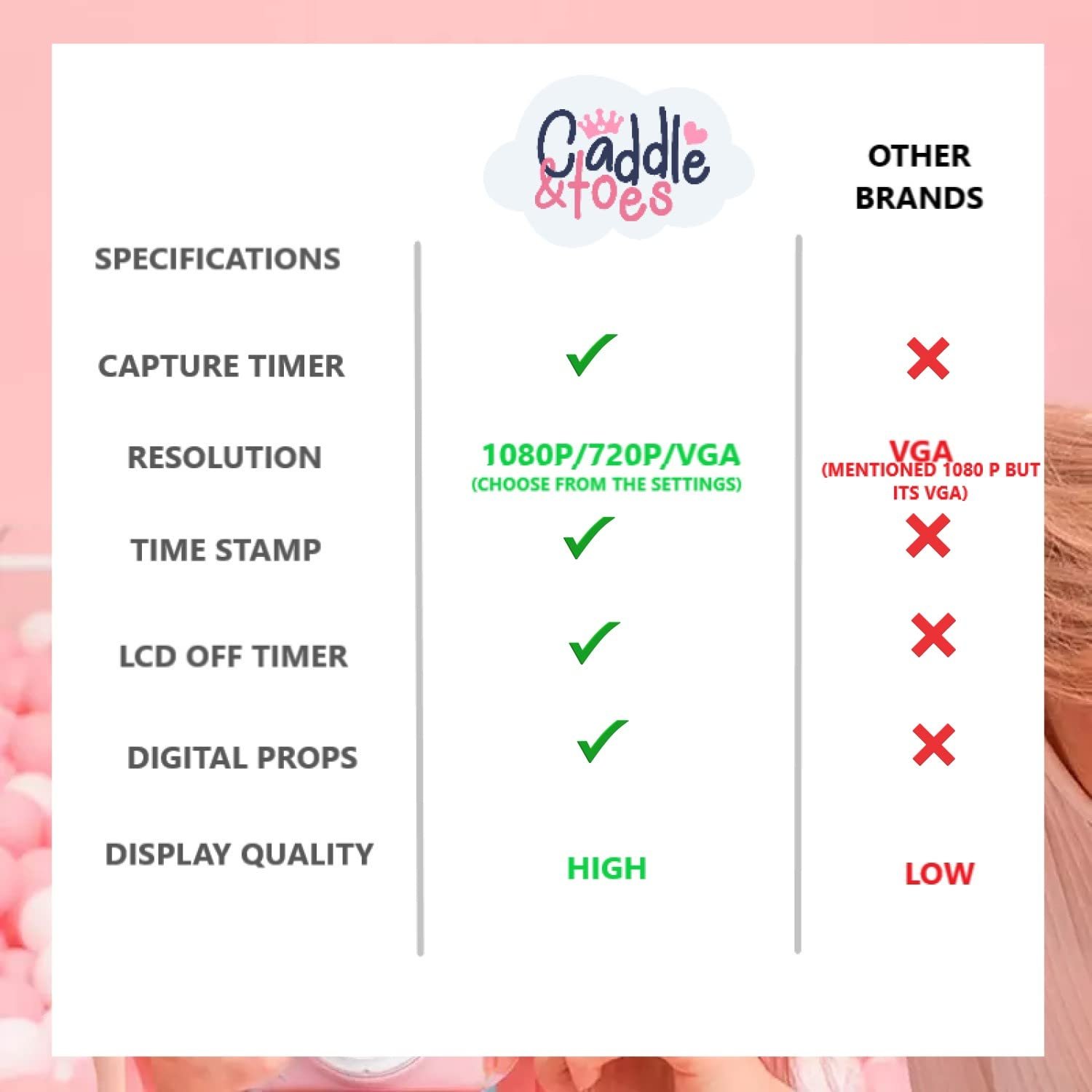 CADDLE & TOES Kids Camera for Girls Boys,Kids Selfie Camera 13MP 1080P HD Digital Video Camera for Toddler,Christmas Birthday Gifts for 4+ to15 Years Old Children (Pink)