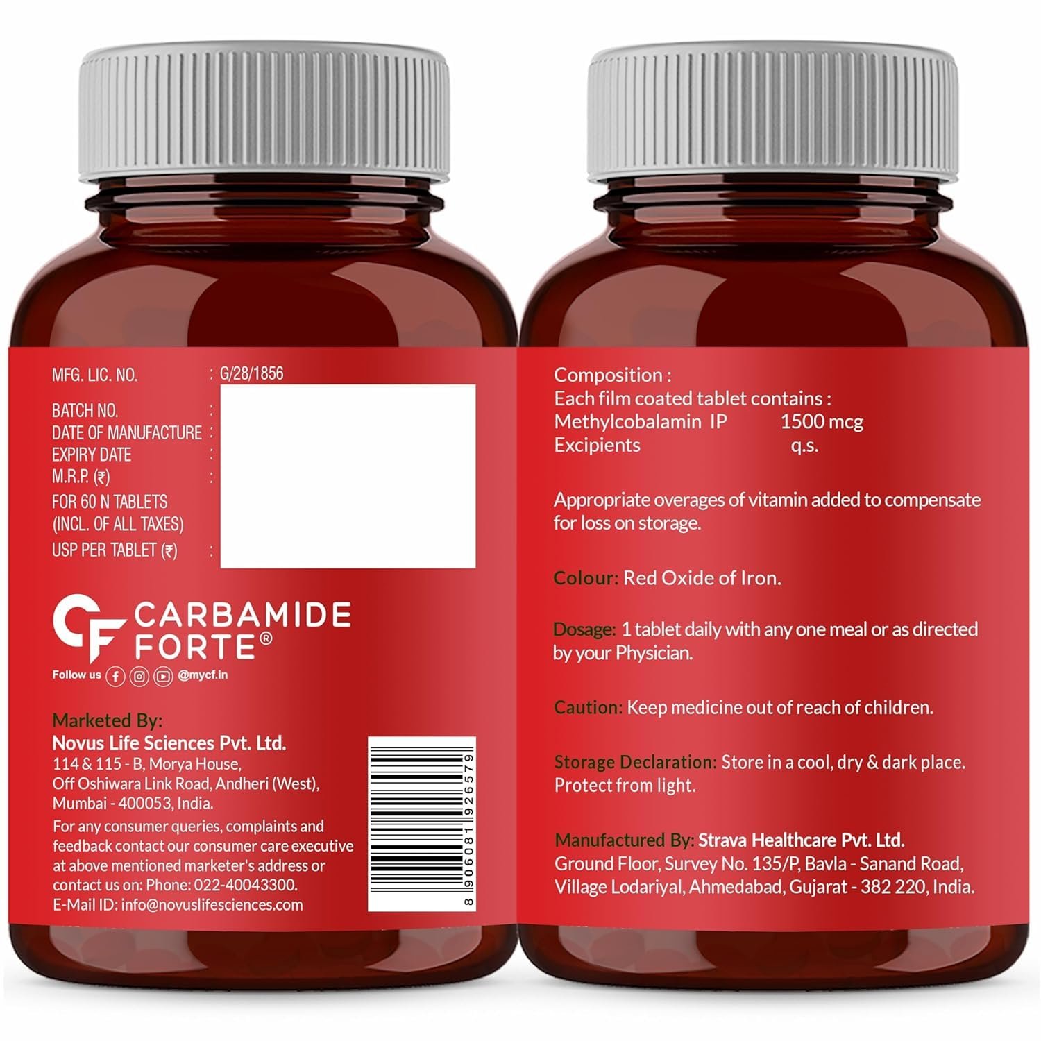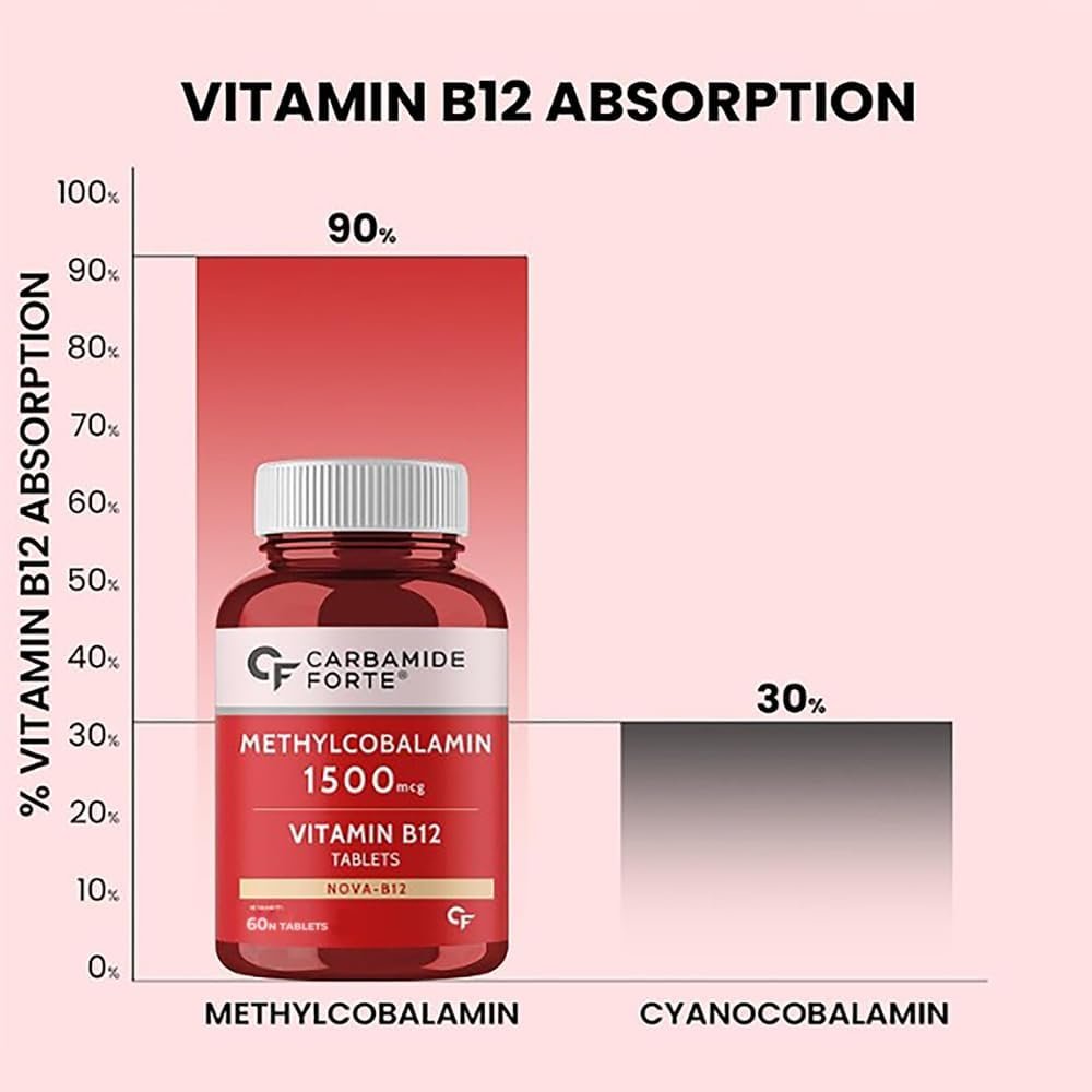 Carbamide Forte Vitamin B12 Supplements | B12 Vitamin Tablets – Methylcobalamin 1500mcg | Best Vitamin B-12 Supplement For Men & Women – 60 Tablets