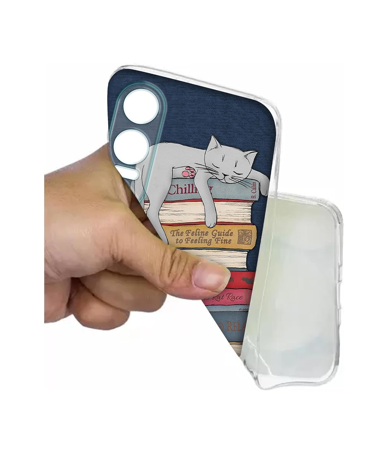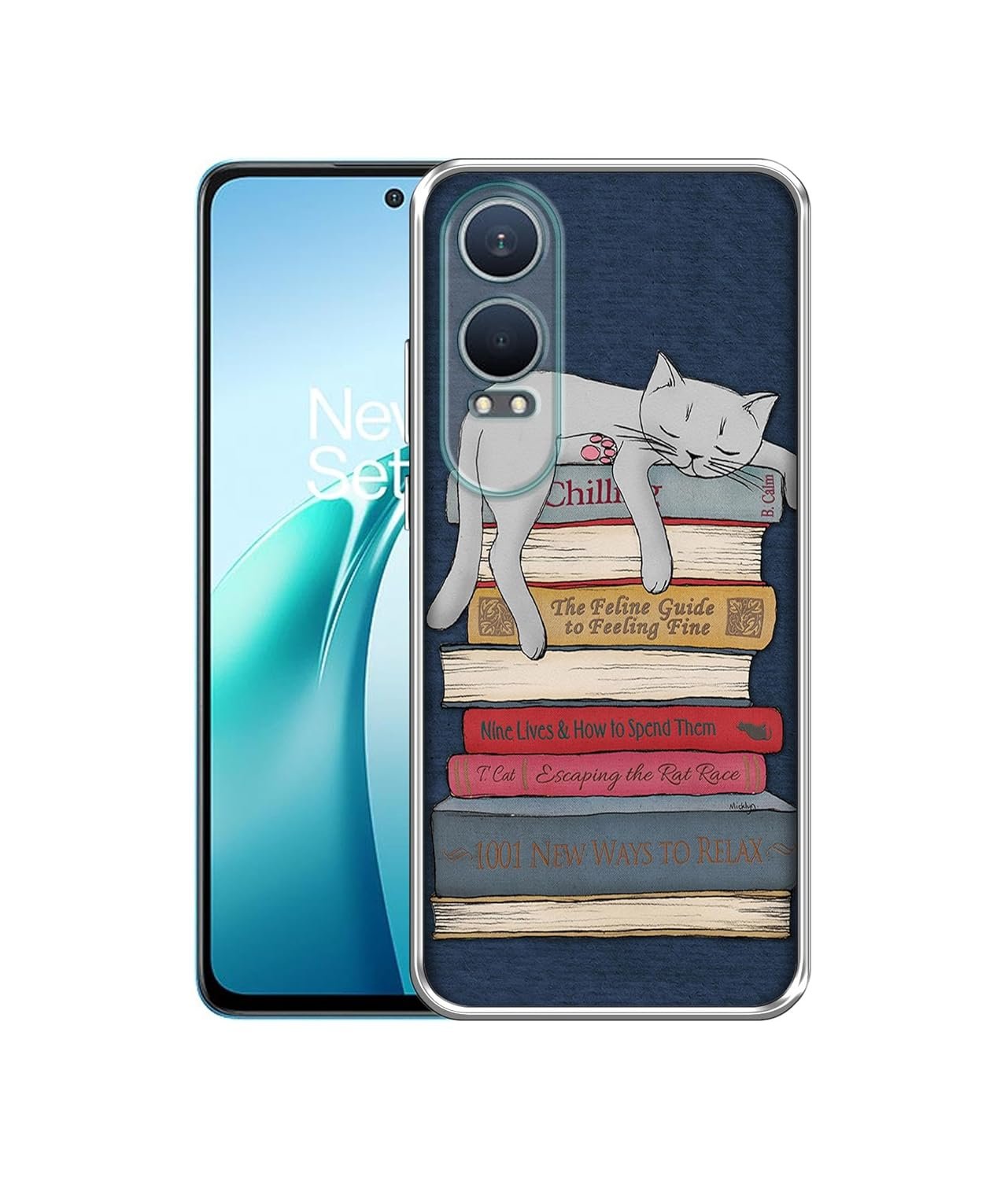 Cat Sleeping On The Books Design Printed Silicon Soft TPU Back Case Cover for OnePlus Nord CE4 Lite 5G
