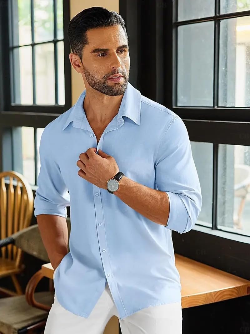 CB-COLEBROOK Men’s Long Sleeve Button Down Shirts Casual Cotton Linen Shirts Summer Beach Shirt for Mens Top (Available in Plus Size)