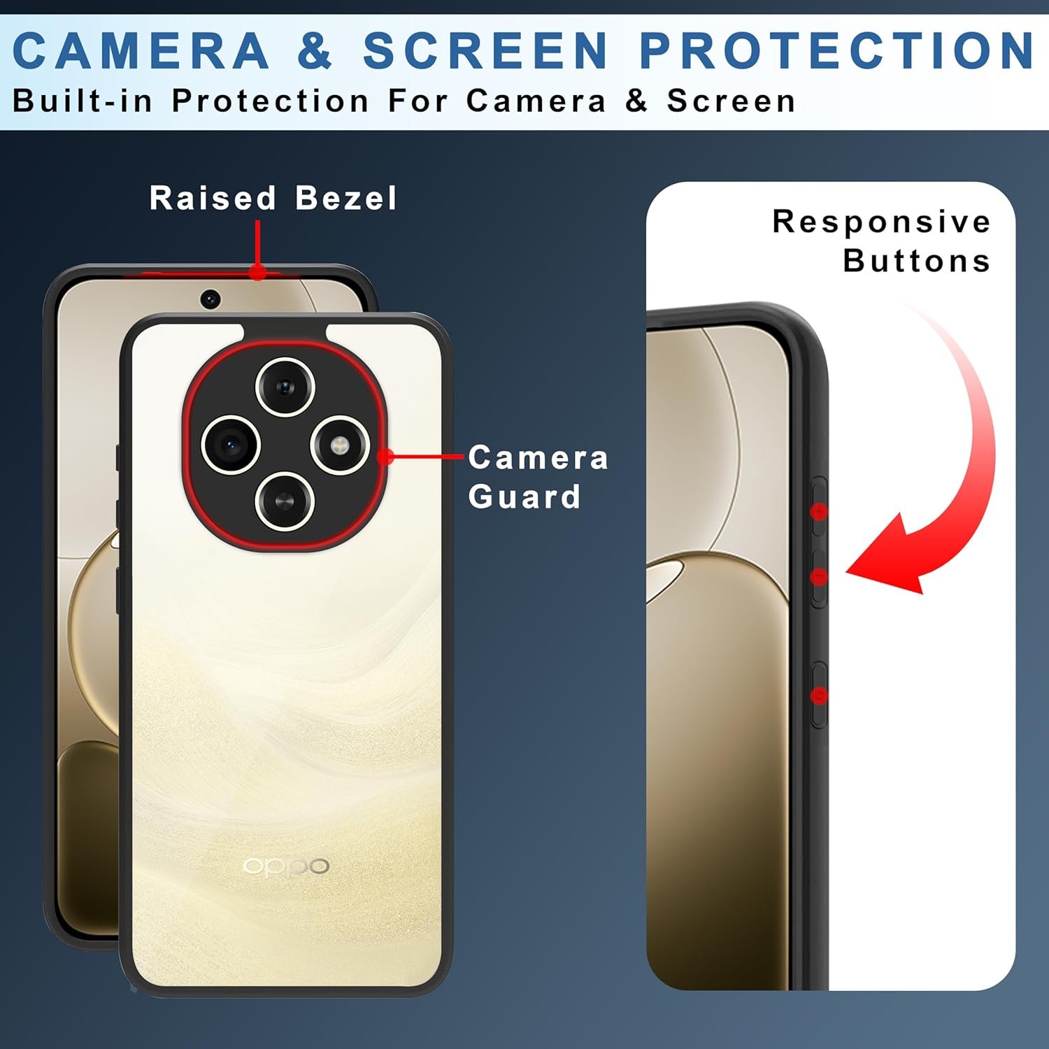 CEDO Oppo F31 Pro (5G) Backcover Case | Camera Protection Bump Shockproof Edge | Ultra Hybrid Transparent Acrylic Clear TPU+PC Hard Backcase Cover (Black)