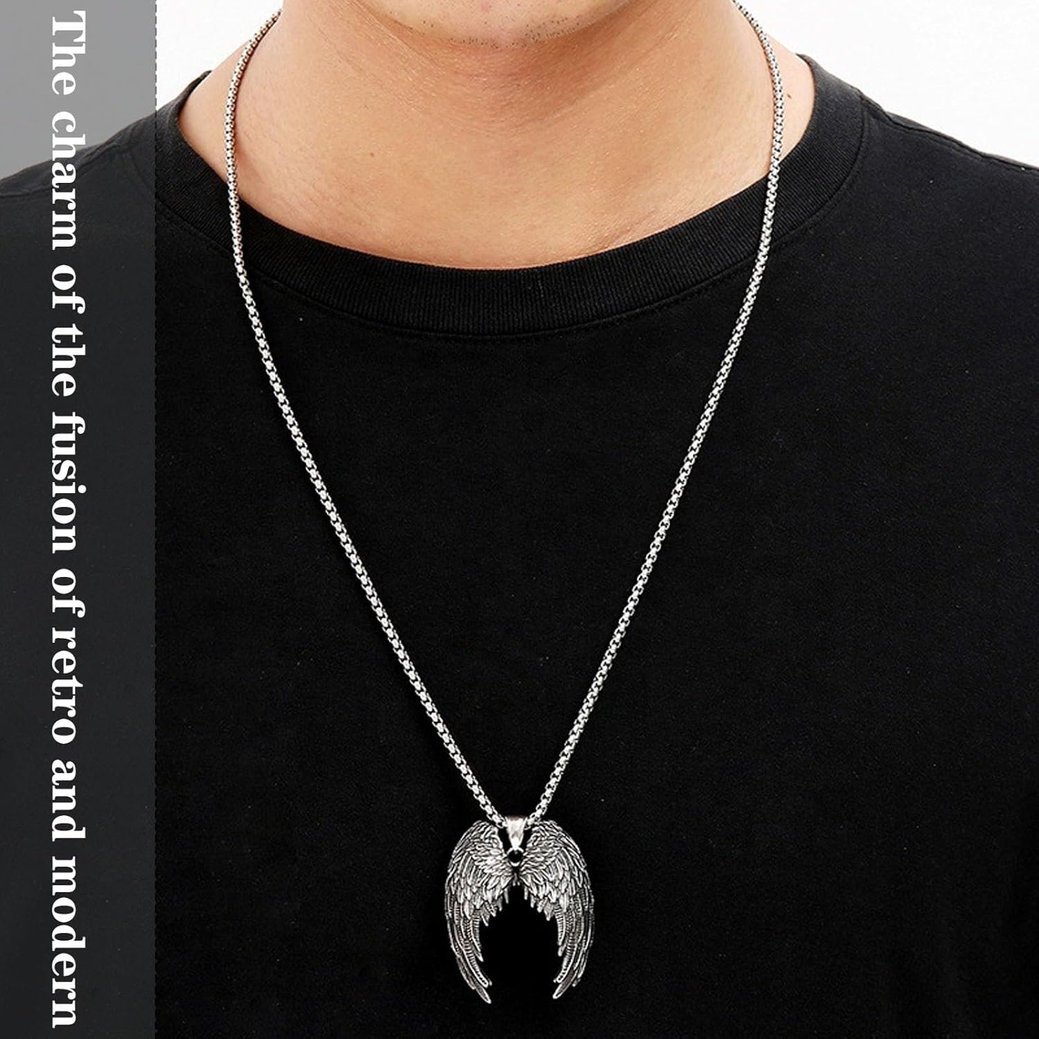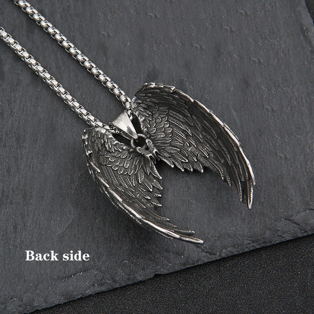 Chain for Man, Angel Wing Titanium Steel Pendant Necklace, Stylish Men Neck Chain with Gothic Design, Gift for Boyfriend Husband, Everyday Wear and Special Occasions