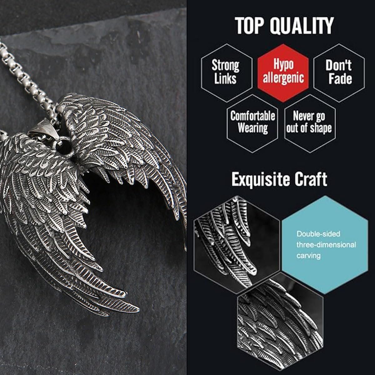 Elevate your style with our Angel Wing Titanium Steel Pendant Necklace, a perfect blend of gothic charm and contemporary fashion. Designed for men who appreciate bold and unique accessories, this chain for men stylish features intricate detailing on the wings, adding a touch of sophistication to any outfit.