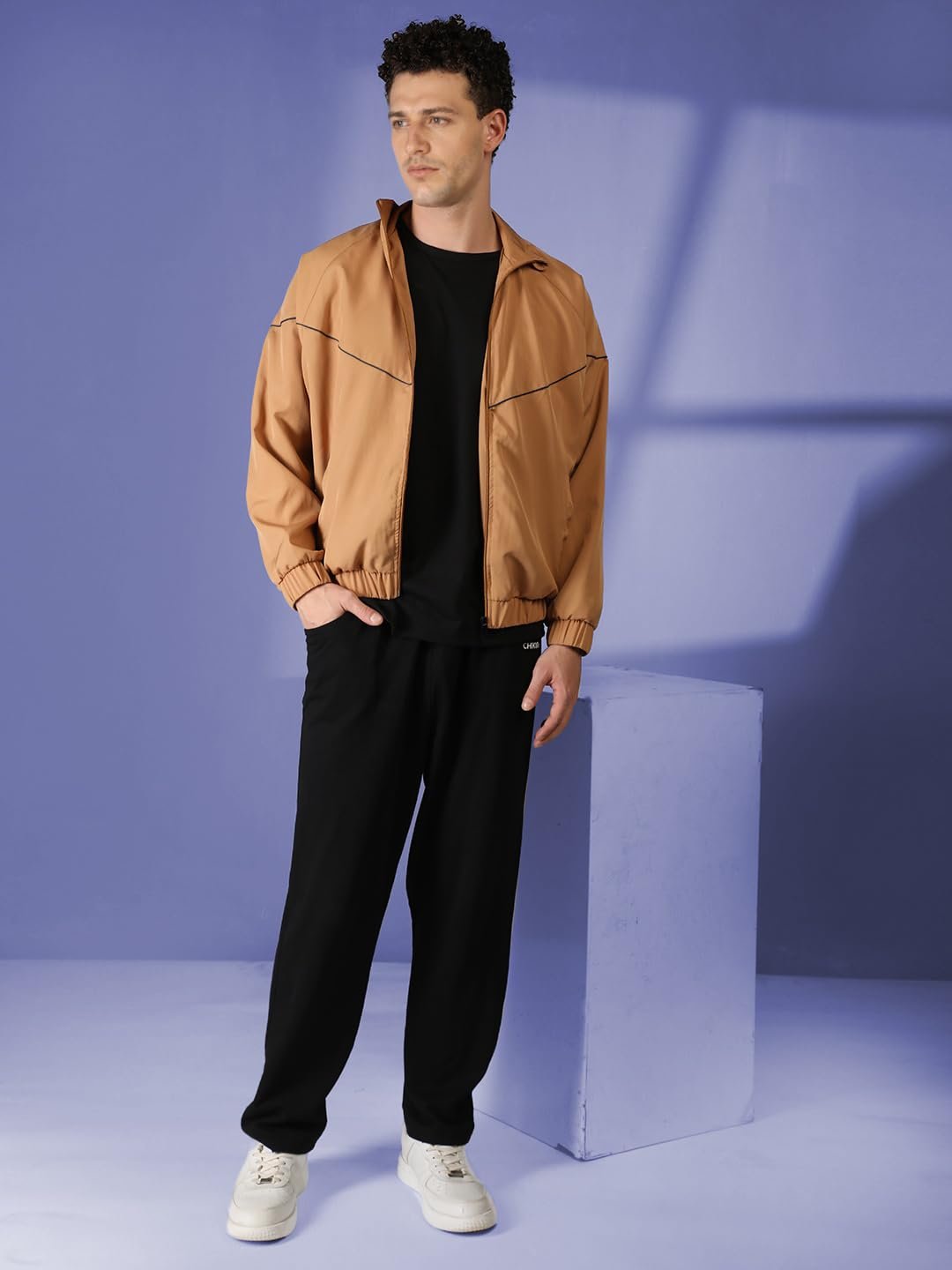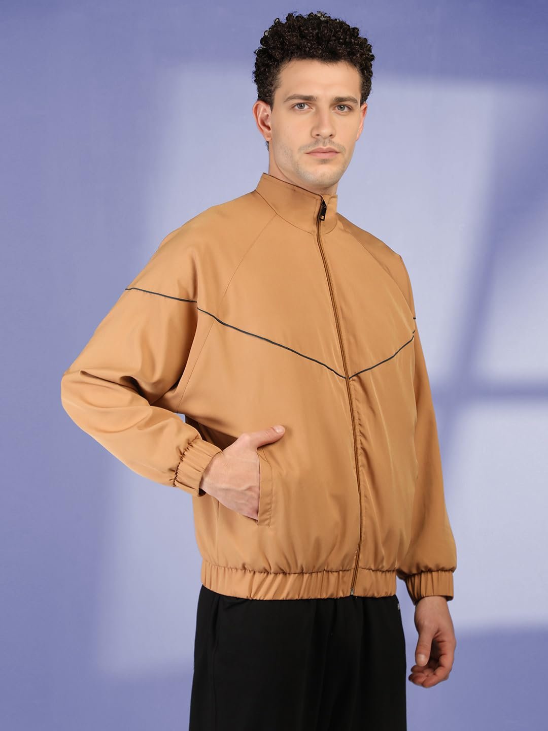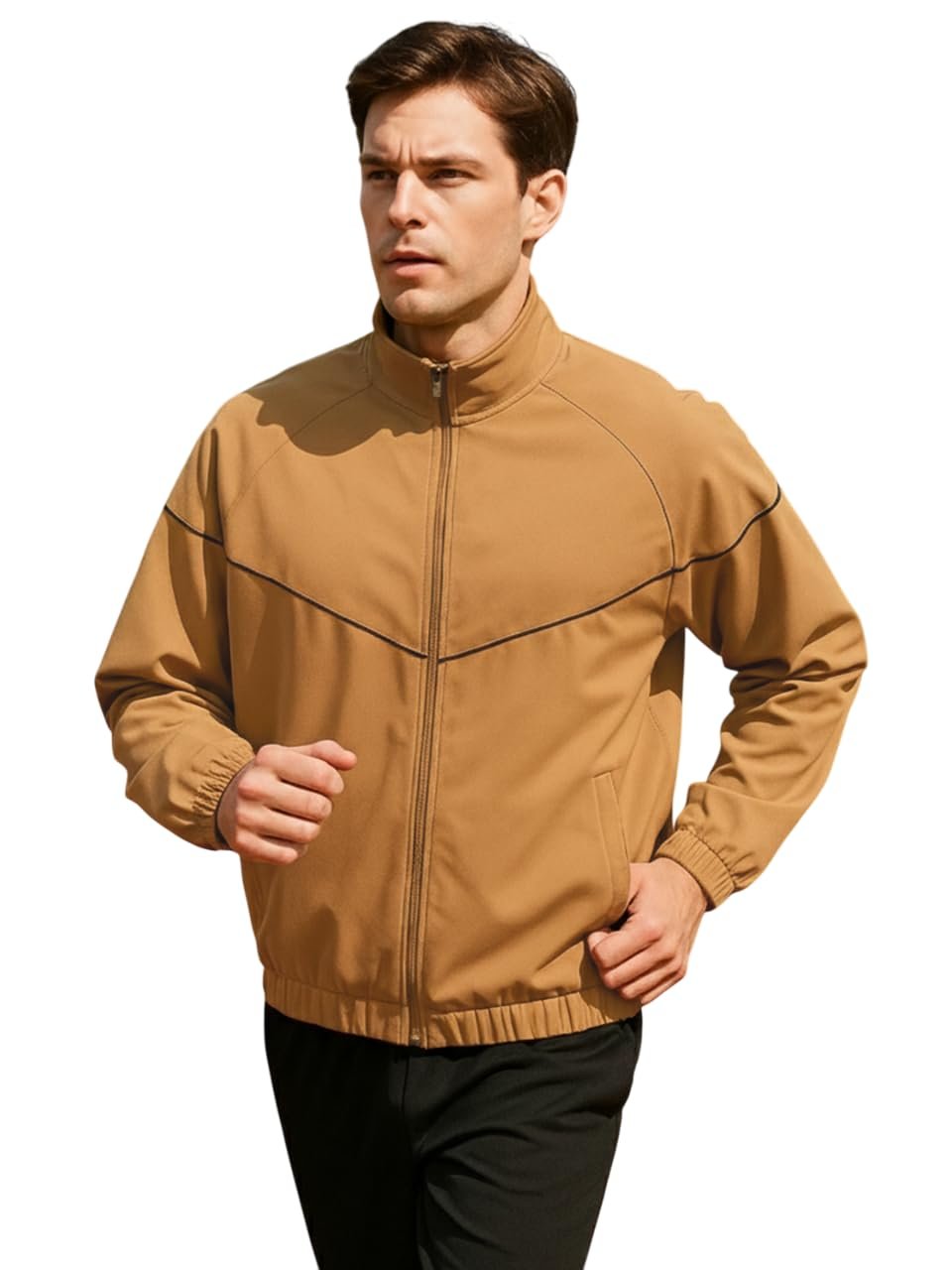 CHKOKKO Men’s Regular Fit Solid Windcheater Jacket for Running, Travel & Hiking | Lightweight Full-Zip High Neck Windbreaker with Pockets & Cuffed Sleeves Winter Sportswear