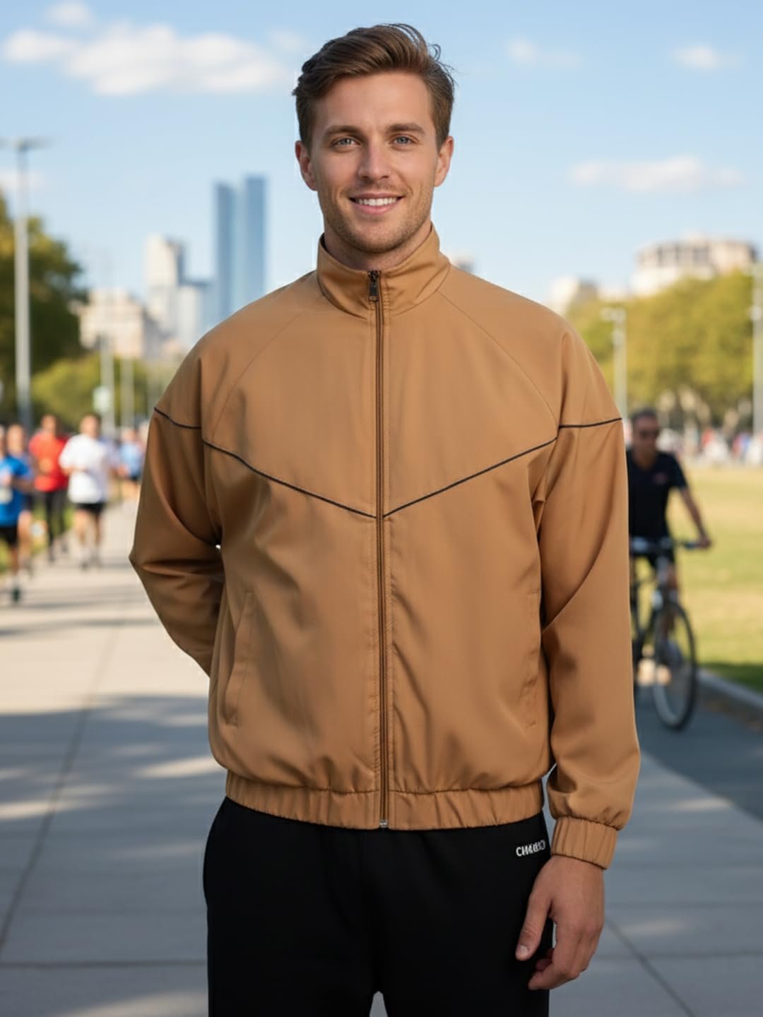 The CHKOKKO Windcheater Jacket is designed to provide stylish protection from the elements. Made from a lightweight, wind-resistant material, this regular-fit jacket features a high neck, full-zip closure, and cuffed sleeves to keep the cold out. Perfect for an active lifestyle, its functional design includes two front pockets for essentials and is a versatile choice for a wide range of activities, from running and hiking to casual daily wear. This jacket is a comfortable and essential layer for the winter season and transitional weather, blending sportswear utility with a clean, casual look.