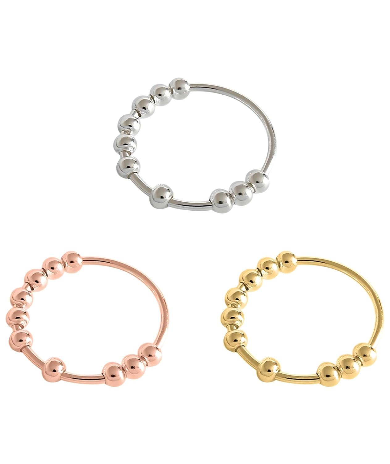 3PCS Fidget Ring, Anxiety Ring for Men and Women, Gold Ring for Men, Stylish Rings for Girls, Rotating Bead Ring for Stress Relief, Office, Study, Gift (Gold, Rose Gold, Silver)