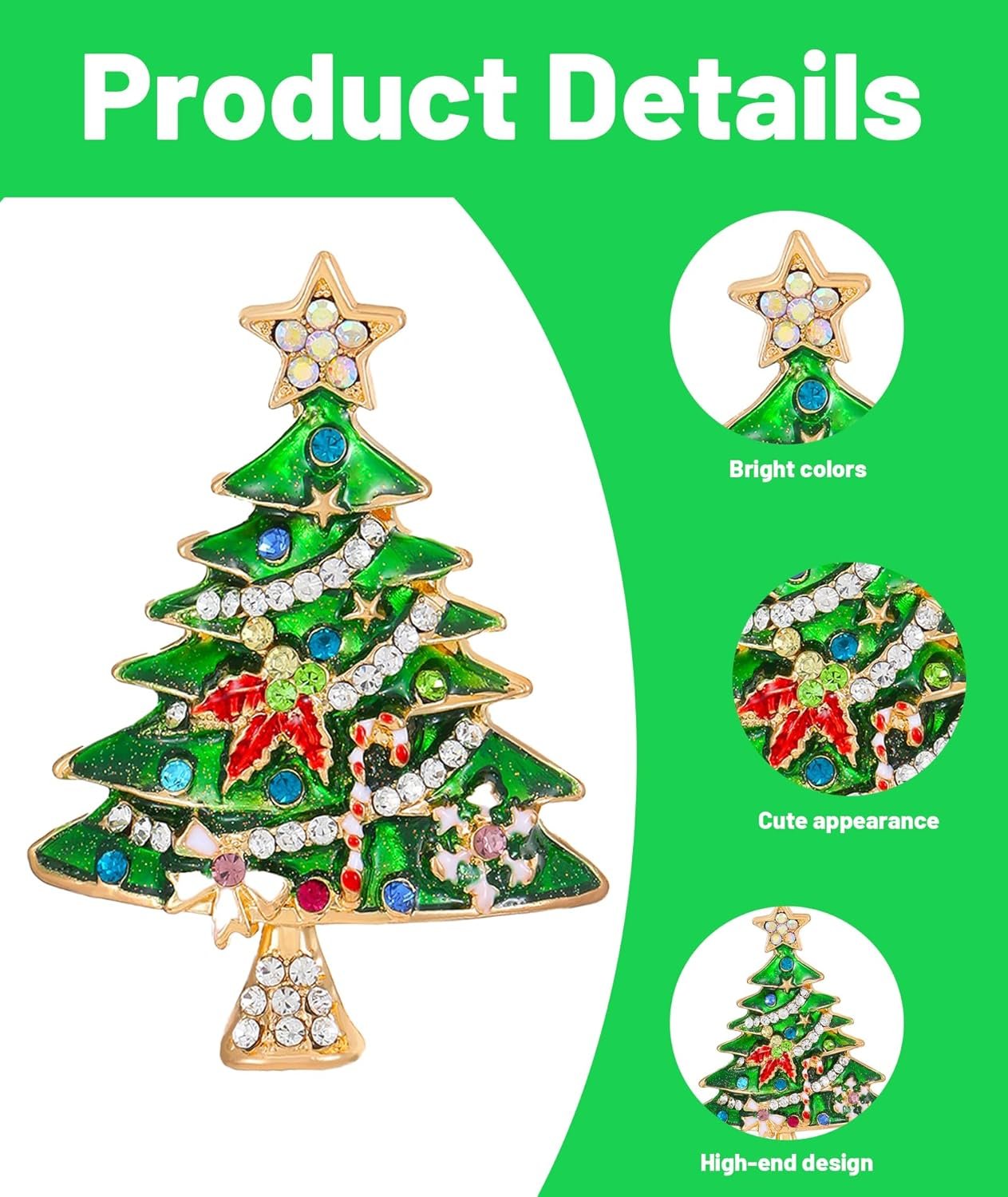 Christmas Brooch, Christmas Tree Brooch Pin for Women and Men, Holiday Decorative Accessory for Clothes and Hats