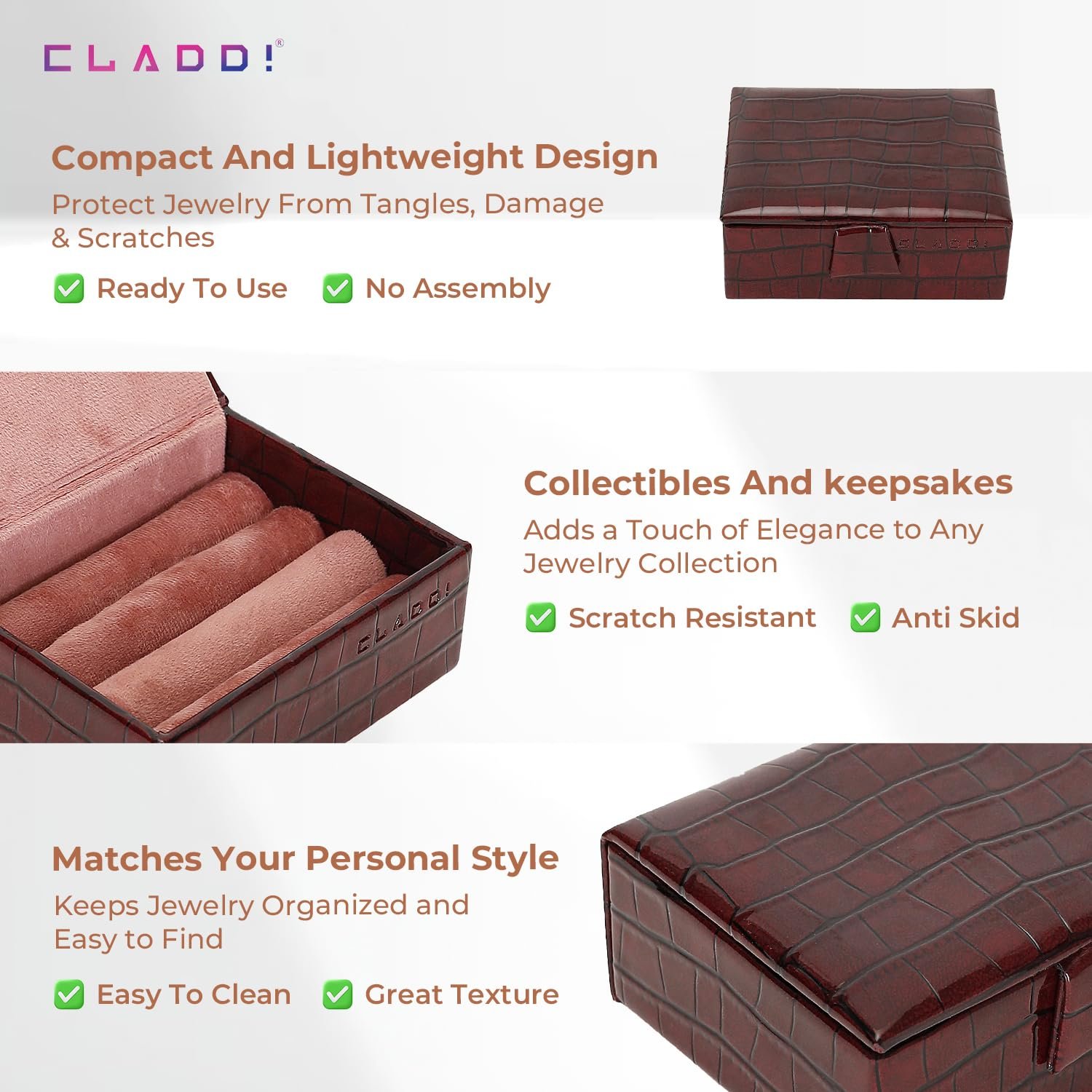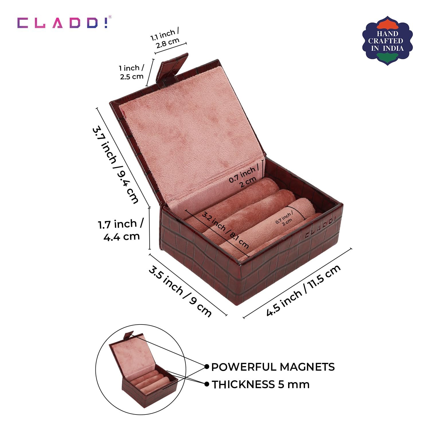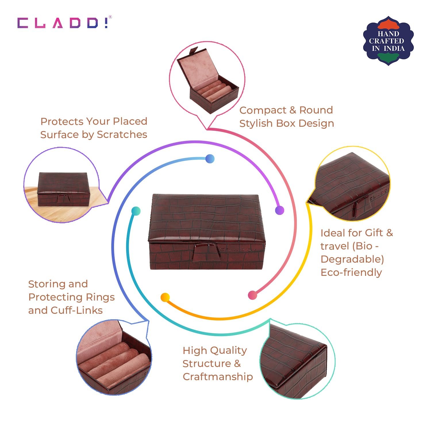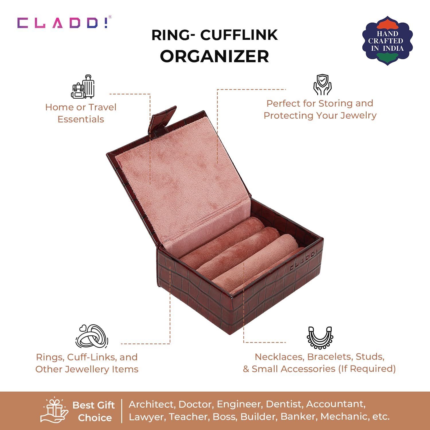 CLADD INTERNATIONAL Cufflinks Set | Jewelry Ring Box for Men & Women | Tie Clips & Tie Pin Gift Set | Padded Vegan Leather | Magnetic Lock (Brown)