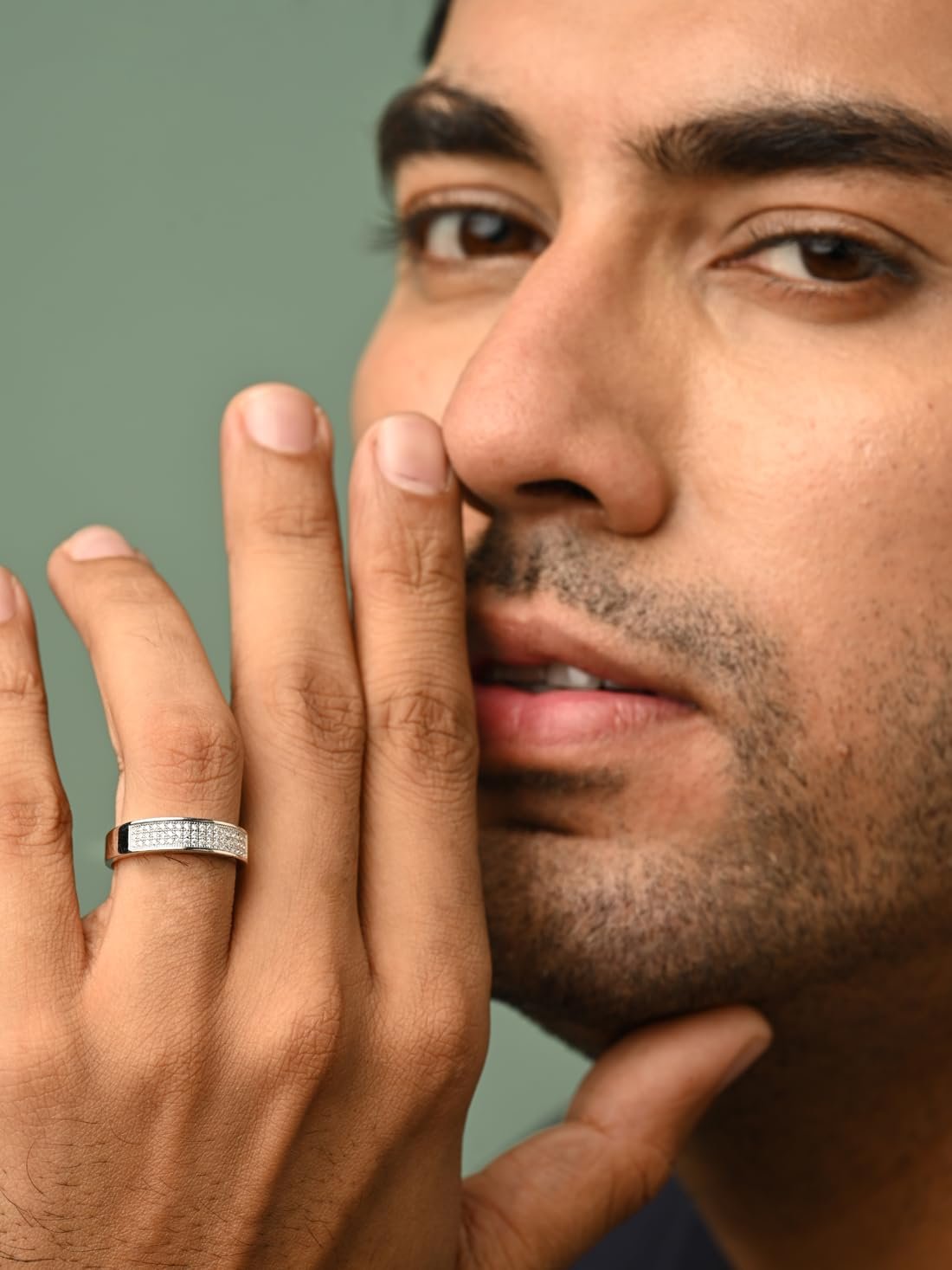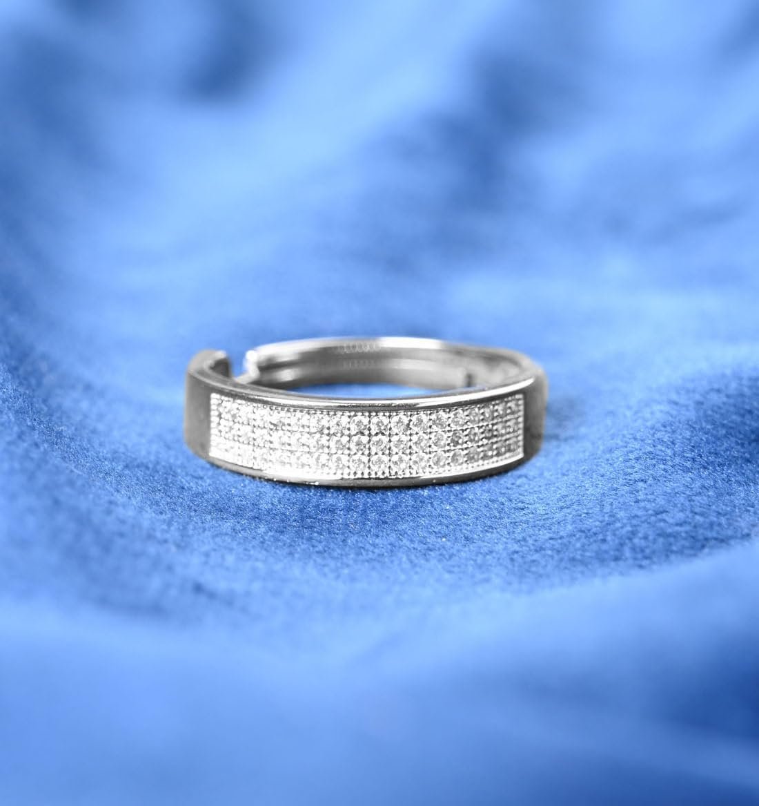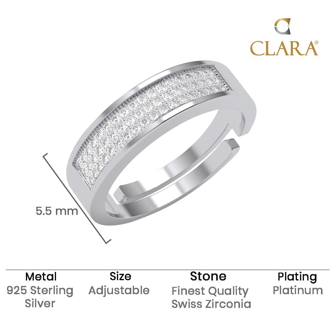 Clara Pure 925 Sterling Silver Izan Men Ring |Size Adjustable, Platinum Plated, Swiss Zirconia | Gift for Men & Boys