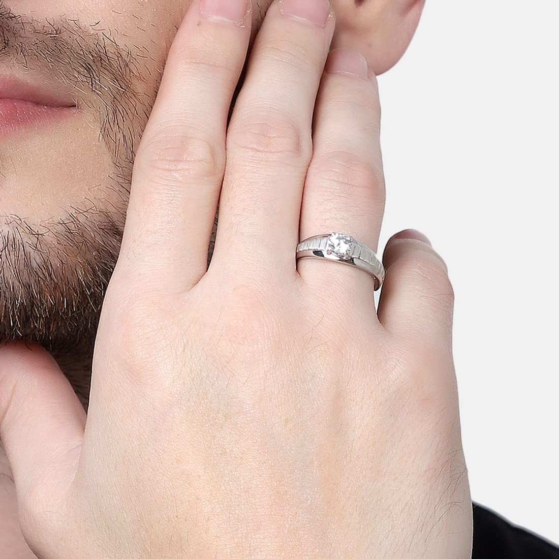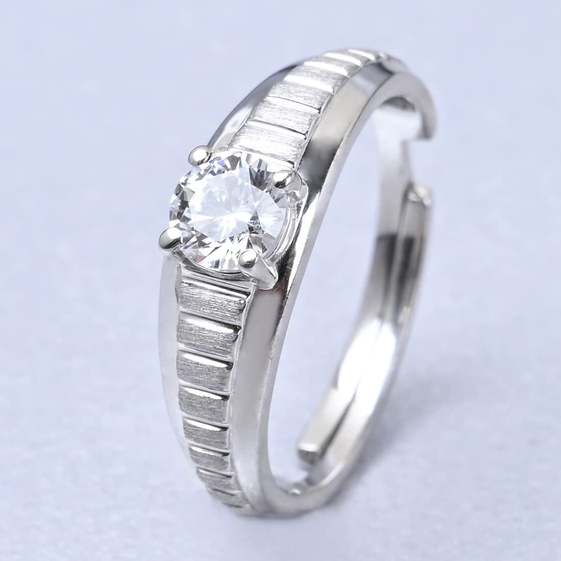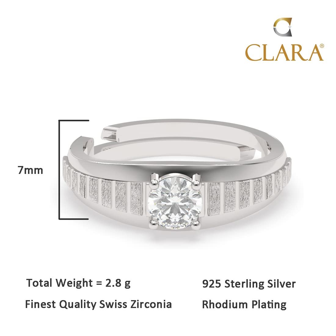 Clara Real 925 Sterling Silver Step Band Ring |Size Adjustable, Matte Finish, Swiss Zirconia | Gift for Men & Boys