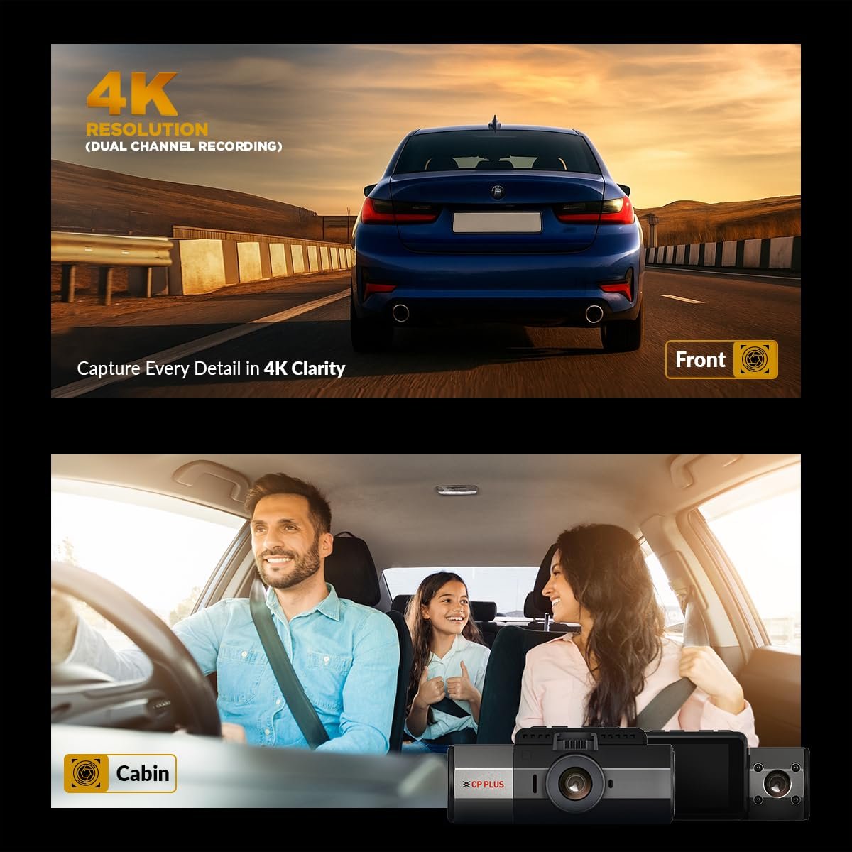 8MP 4K Ultra HD Dual Dashcam for Car with Cabin Camera – The CP PLUS CP-F85B dashcam for car features an 8MP Ultra HD front dash camera with 3840×2160P resolution and a 2MP Full HD in-cabin dashcam, offering unmatched video clarity. This powerful dual dash camera setup captures every road detail and in-cabin activity in crystal-clear definition, ideal for fleet vehicles, personal cars, and rideshare drivers.