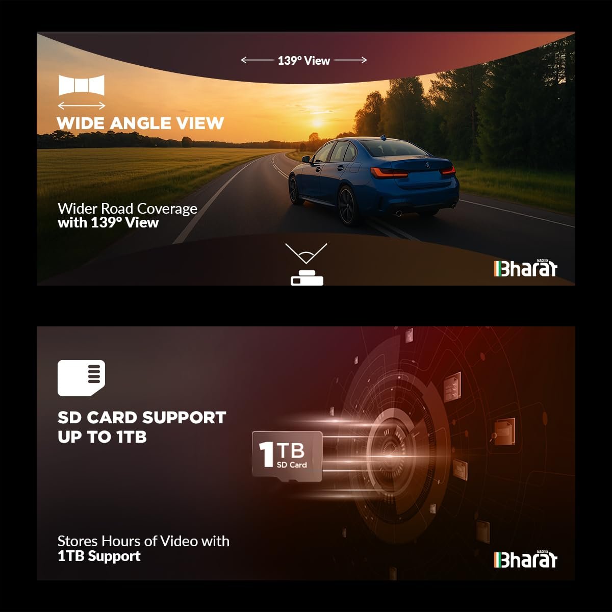 SD Card Support up to 1TB for Long-Duration Storage – This dashcam for cars supports high-capacity SD cards, letting you store hours of high-resolution video—ideal for fleet monitoring, taxis, or personal long drives.