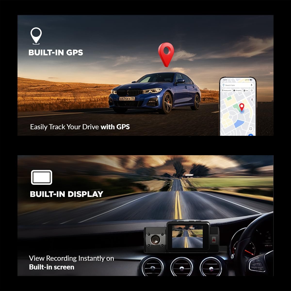 24×7 Parking Surveillance with Time-Lapse Dashcam Mode – Keep your car monitored even when it’s turned off. This dashcam for car enables time-lapse and motion-triggered recording when hardwired for parked security.