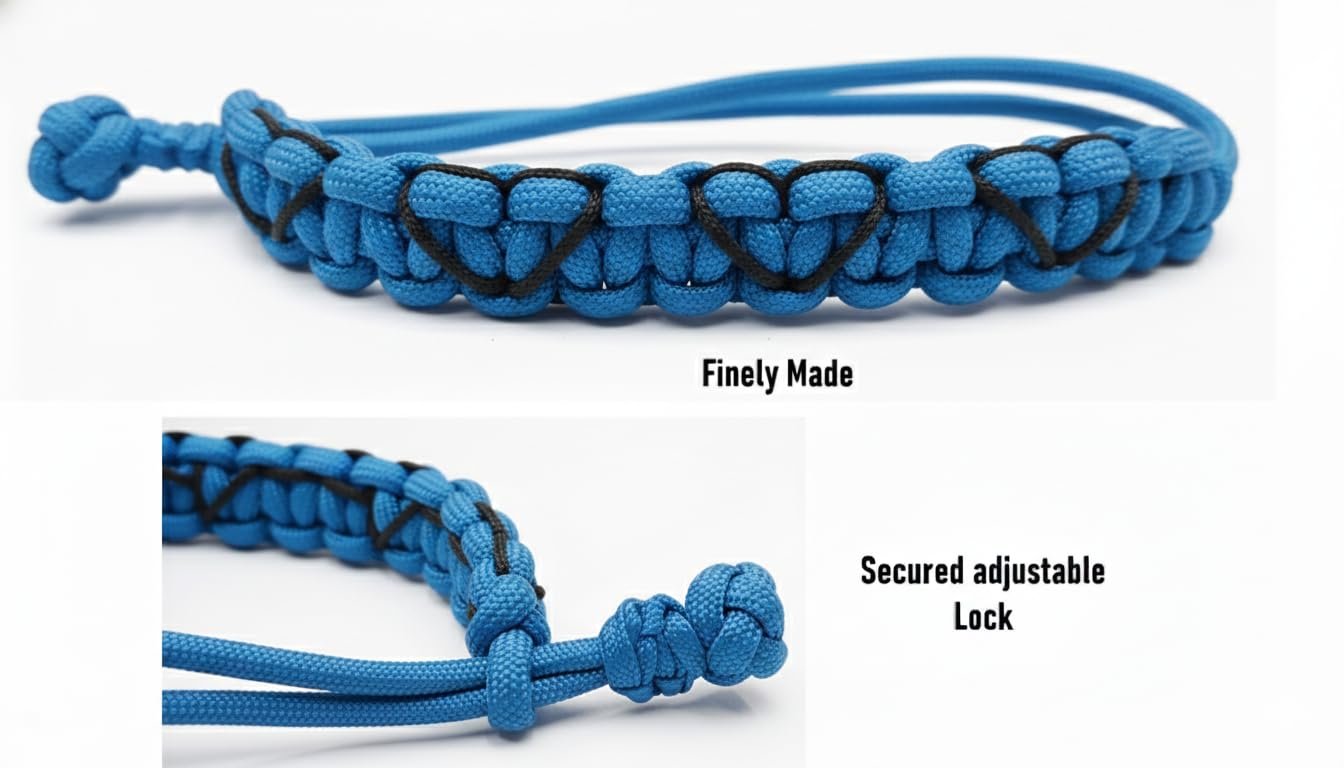 Be the first to review “CrownLit Blue Paracord Bracelet, Heart Pattern Woven Design, Adjustable Wristband with Sliding Knot Closure”