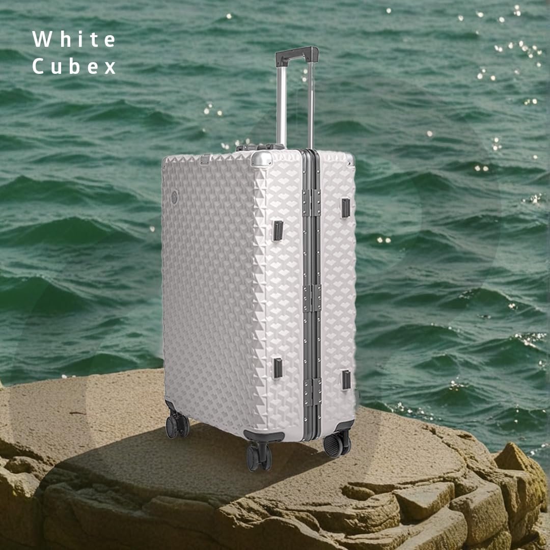 Cubex Hard PC Trolley Luggage, Large Size, 100% Polycarbonate, Lightweight and Durable, Silent Wheels, Anti-Theft with Aluminium Frame, and 3 TSA Locks, 28-Inch, Moonlight Frost