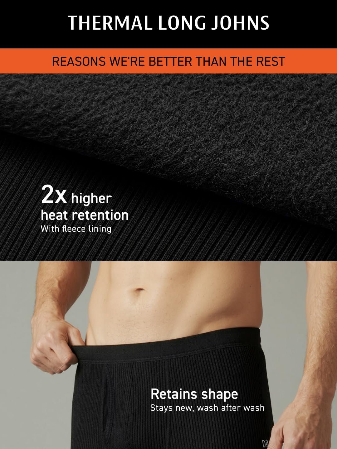 DAMENSCH HeatCode Warmer for Men; Cotton Blend Winter Inner; Fleece Lined Ribbed Thermal Wear for Men Bottom; Super Soft Body Warmer Long Johns