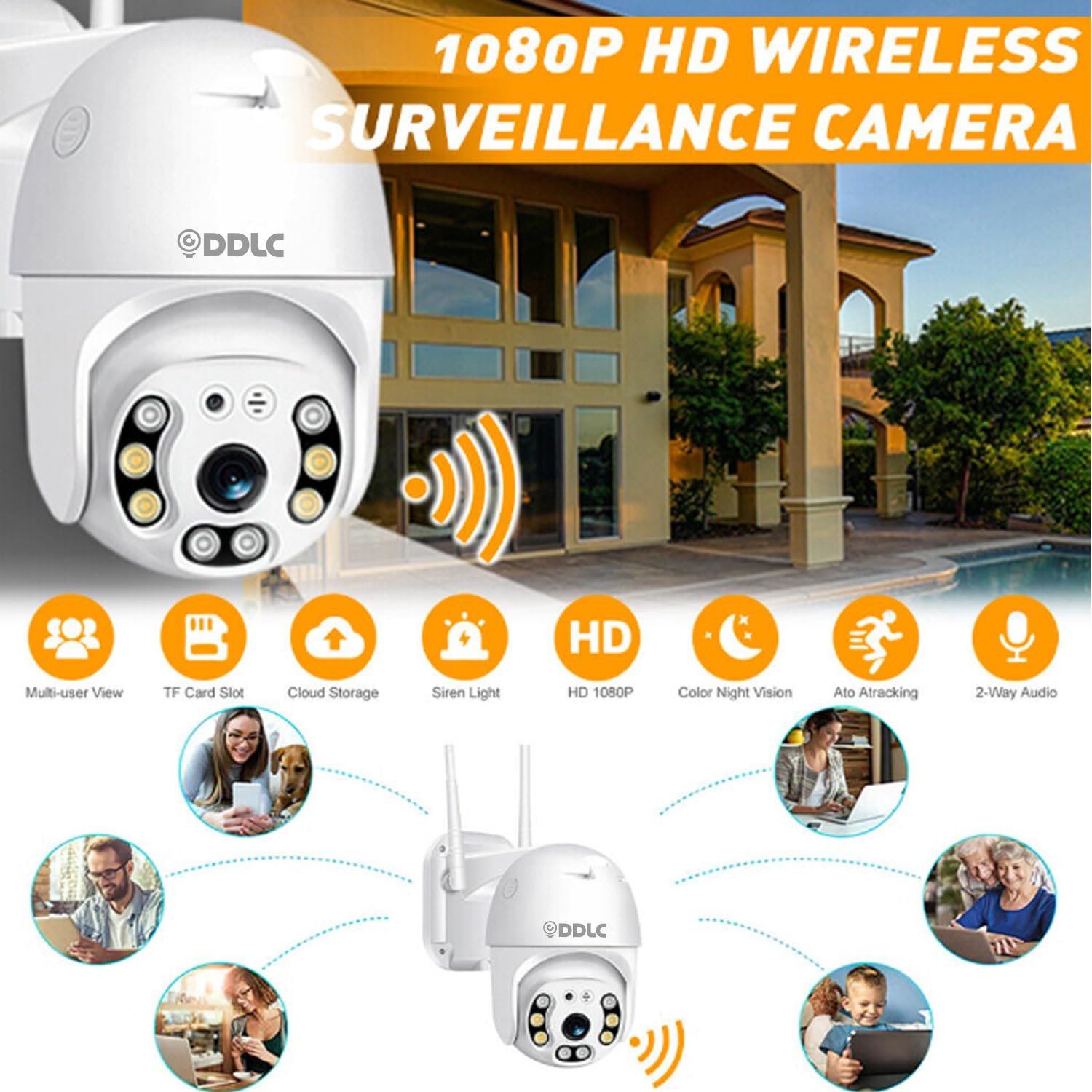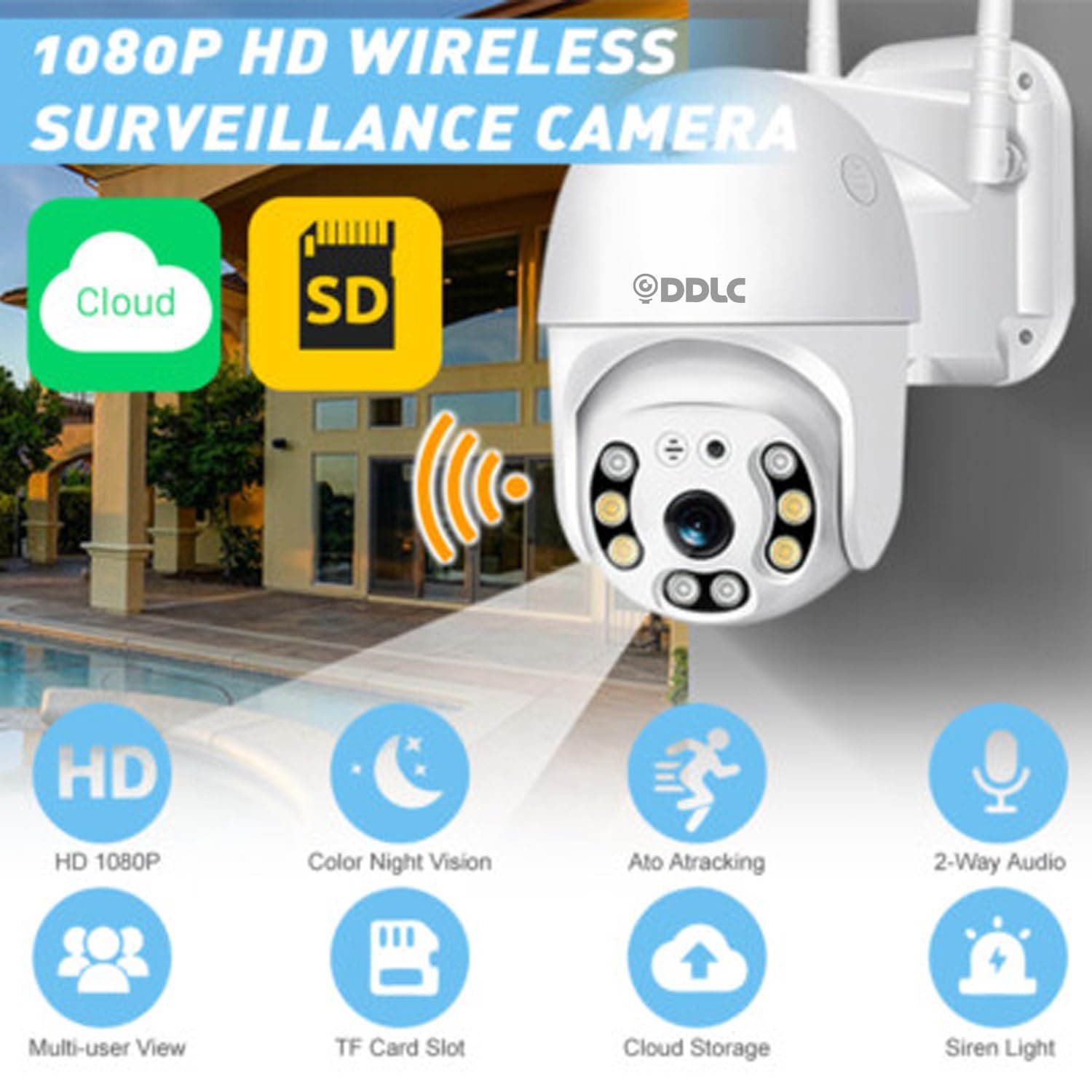DDLC Full HD 1080P Camera Wi-Fi IP66 PTZ V380 PRO Pan Tilt Surveillance Camera, Two Way Audio/Motion Detection/Best Night Vision/Waterproof CCTV/Support Upto 64GB SD (ptz)