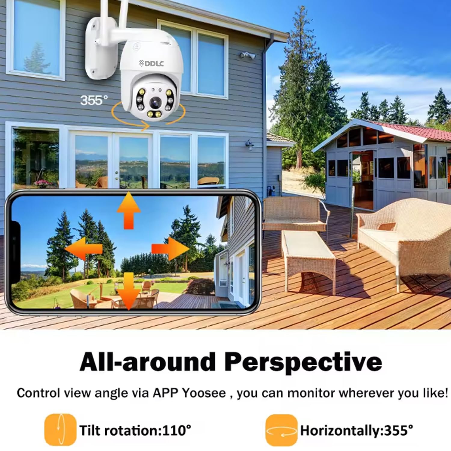 DDLC :- V380 PTZ IP Camera 355° Pan 90° Tilt Wi-Fi Camera with Two Way Audio- Wi-Fi antenna, 355° horizontal & 90° vertical rotation range cover a much bigger vision range with less blind area. This Two-Way Audio Wi-Fi camera allows you to speak & listen clearly throw your phone.64gb memory card support