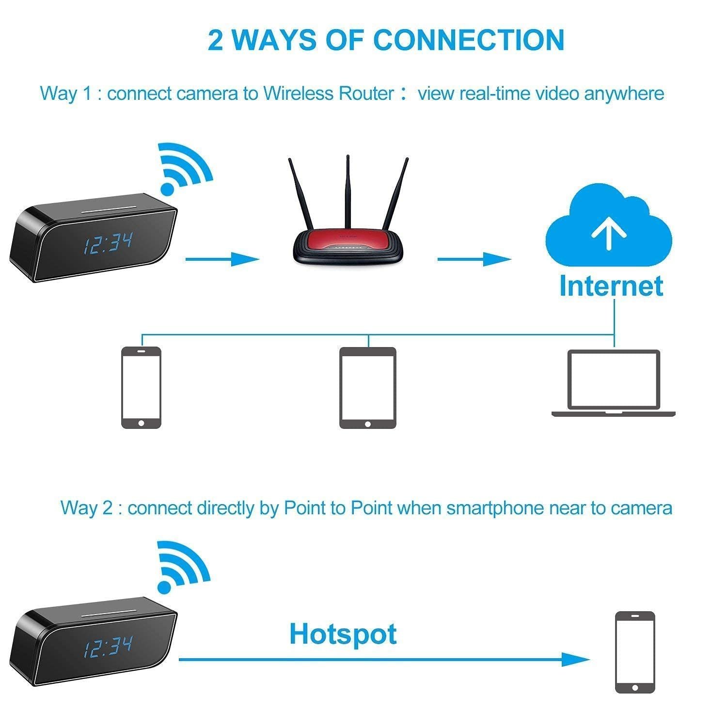 DEATTI 4K UHD Spy Hidden in WiFi Clock Hidden Camera Wireless IP Video Recorder Indoor Security Surveillance Camera Nanny Cam 140° Angle Night Vision/Motion Detection (DECM29)