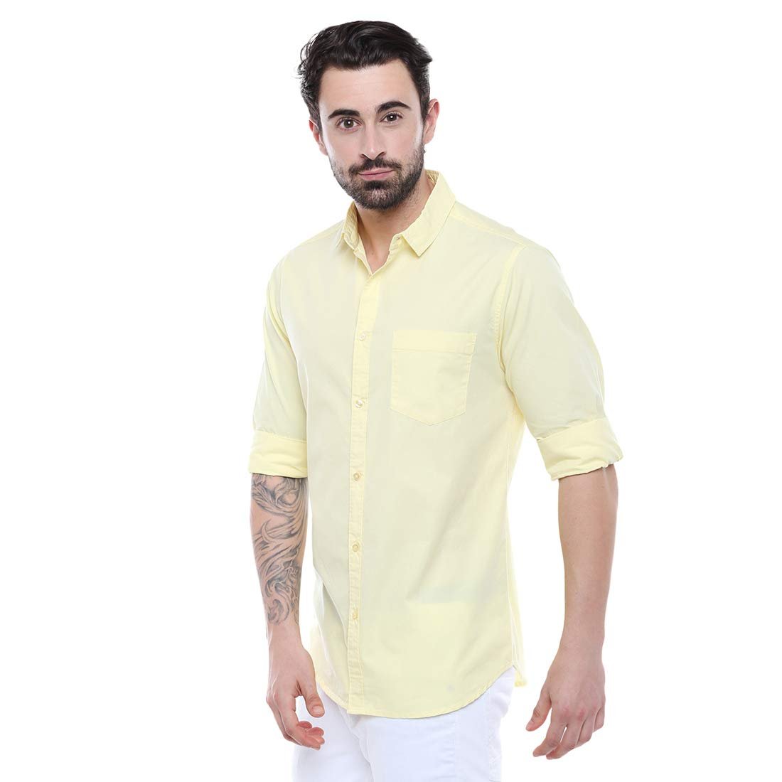 This Casual Solid shirt has a Slim fit, Spread collar, full button Placket, Full Sleeves, and a curved hemline Size and Fit Slim Fit The Model (height 6 foot and shoulders 18 inches is wearing size 40/M Please check the size chart for more details before ordering Material & Care 100% Premium Cotton (Machine Wash Regular) Style Tip Enhance your look by wearing this Casual Stylish Men’s shirt, Team it with a pair of Chinos or Tapered Denim and Sneakers for a fun Smart Casual look About the Brand DENNIS LINGO Finding Basic Menswear for daily use can be hard among todays Fast fashion world, where trends change daily. That’s why we started Dennis Lingo, to create a one stop shop for premium essential clothing for everyday use at lowest prices.