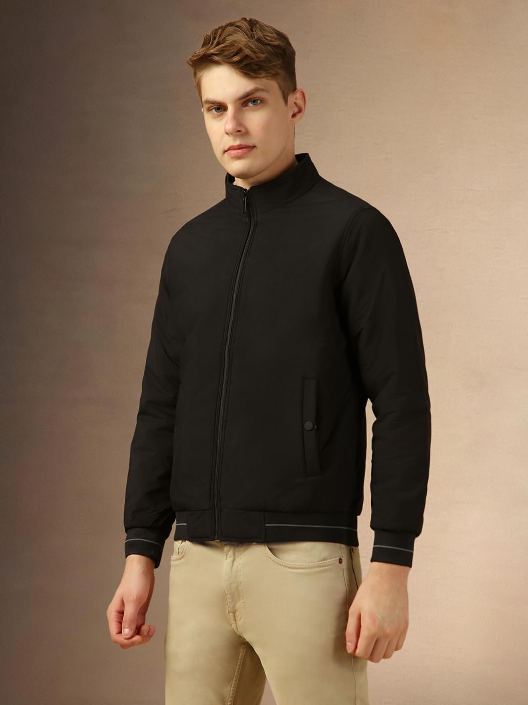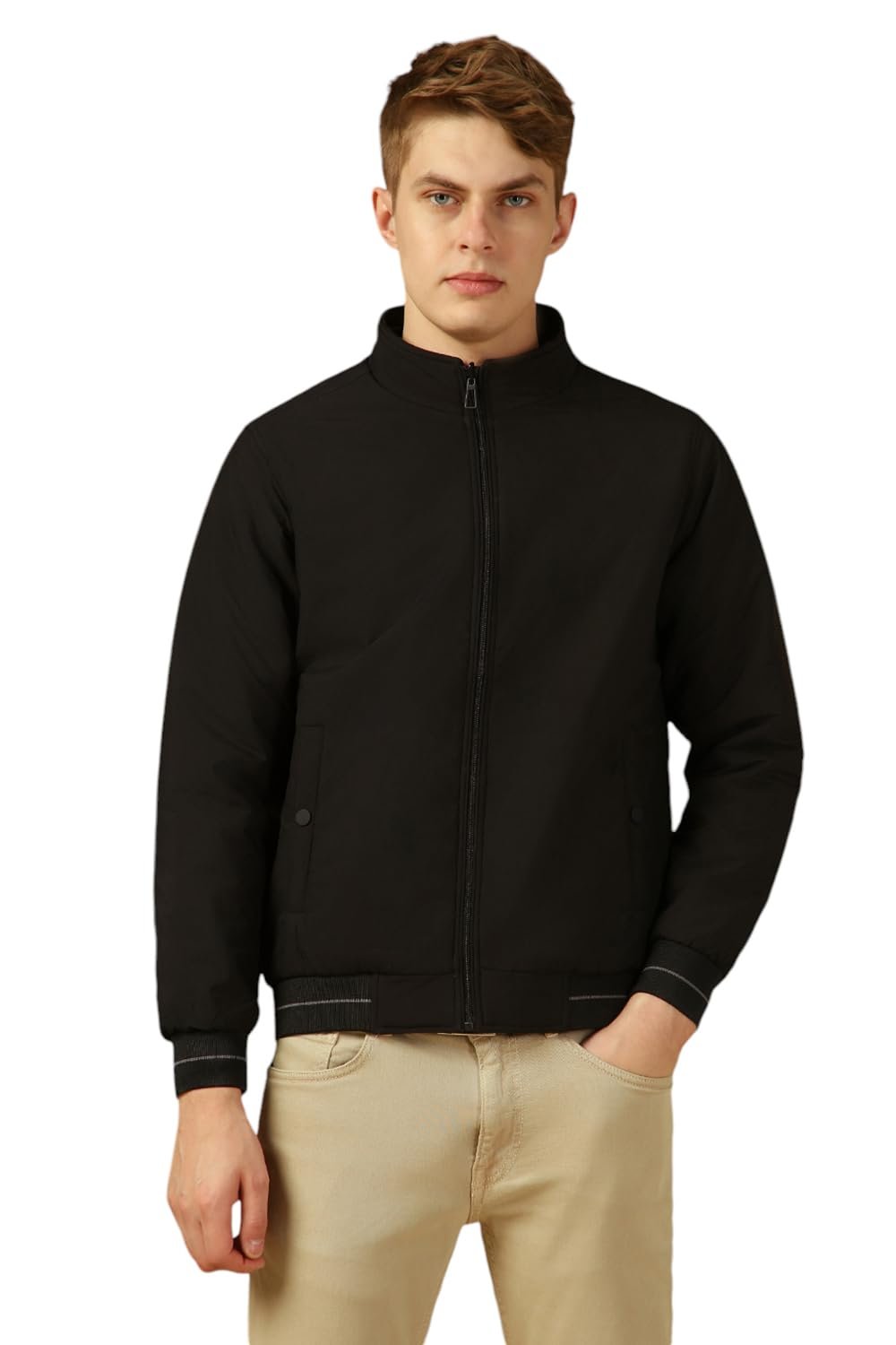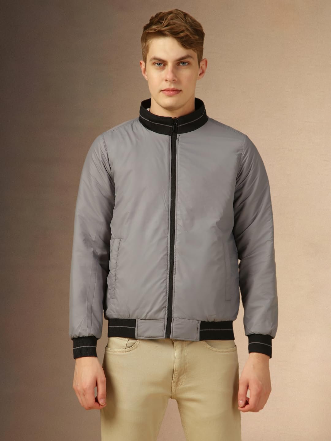 Dennis Lingo Men Grey Solid Regular Fit Full Sleeve Mock Collar Padded Jacket