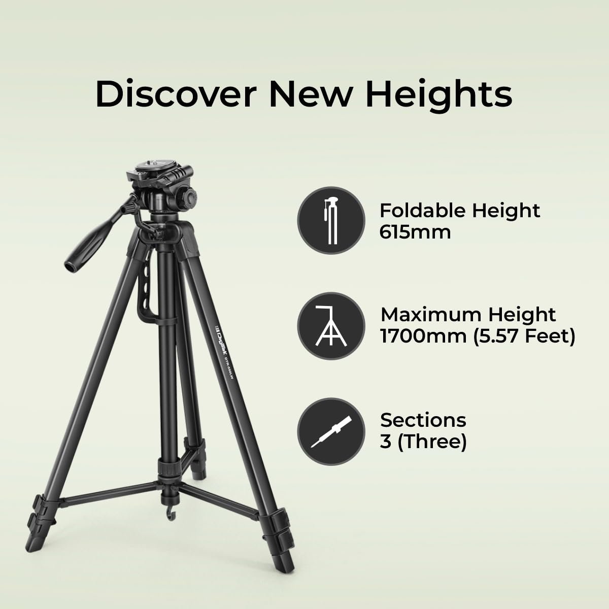 Digitek tripod dtr 550 lw, light weight heavy duty tripod from house of Digitek max load capacity 5 kg maximum height 1700mm (5. 57 Feet)2 way head with adjustable pan multipurpose head with quick release multipurpose head for dv cameras.