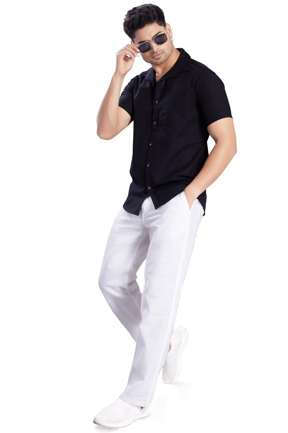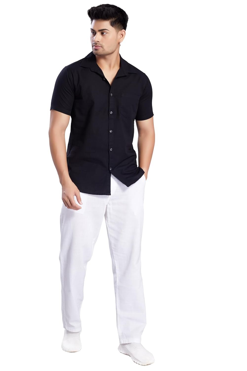 DIVISIVE Men’s Slim Fit Linen Half Sleeves Cotton Casual Shirt