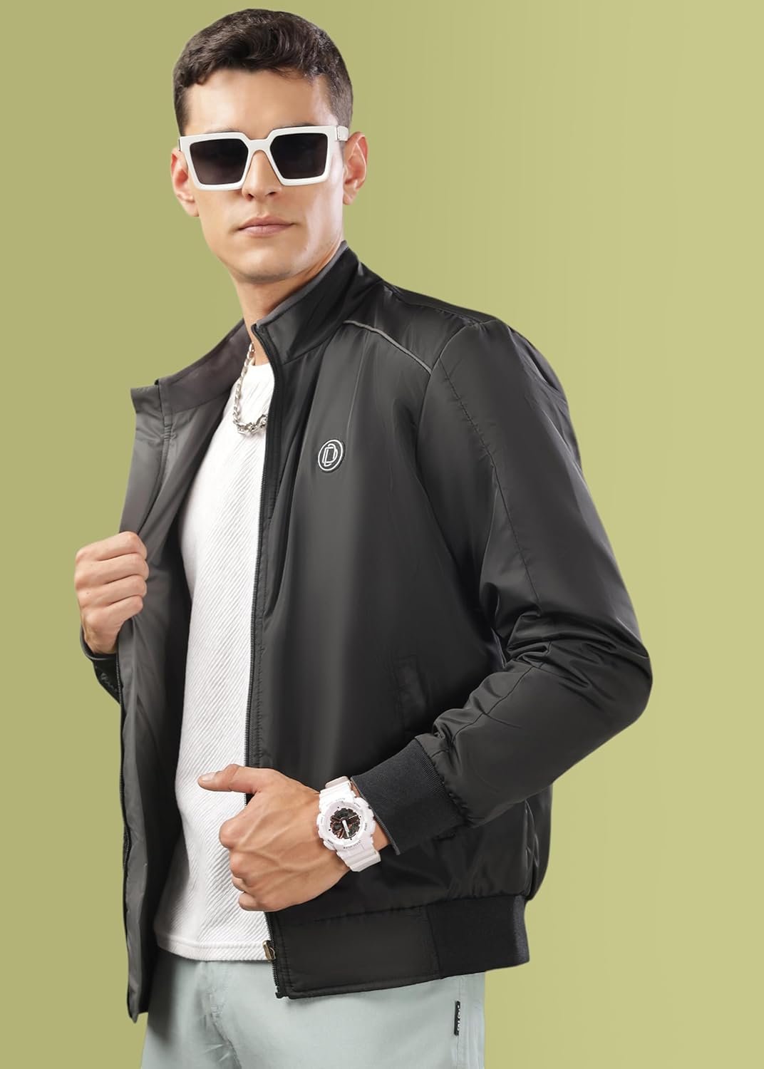 5). Embrace a fashion-forward approach with the Dollar Casual Solid Bomber Jacket for Men. Whether you’re strolling through the city streets or attending a social gathering, this jacket will exude confidence and charisma, making you the center of attention.Introducing the Dollar Casual Solid Bomber Jacket for Men, a perfect fusion of style and comfort that will elevate your fashion game to new heights. This classic bomber jacket is a must-have addition to any modern man’s wardrobe.