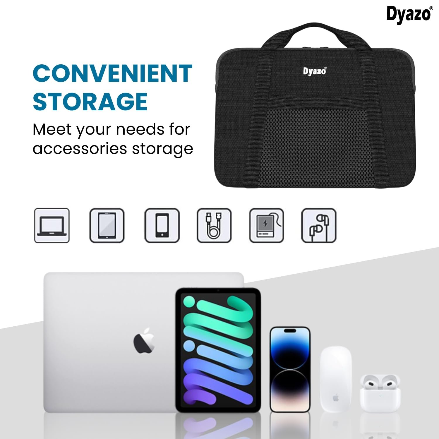 Functional Front Storage Pocket: Includes a spacious mesh pocket at the front to hold charger, mouse, USB cables, mobile, memory cards or pens—perfect for organizing tech accessories on the go.