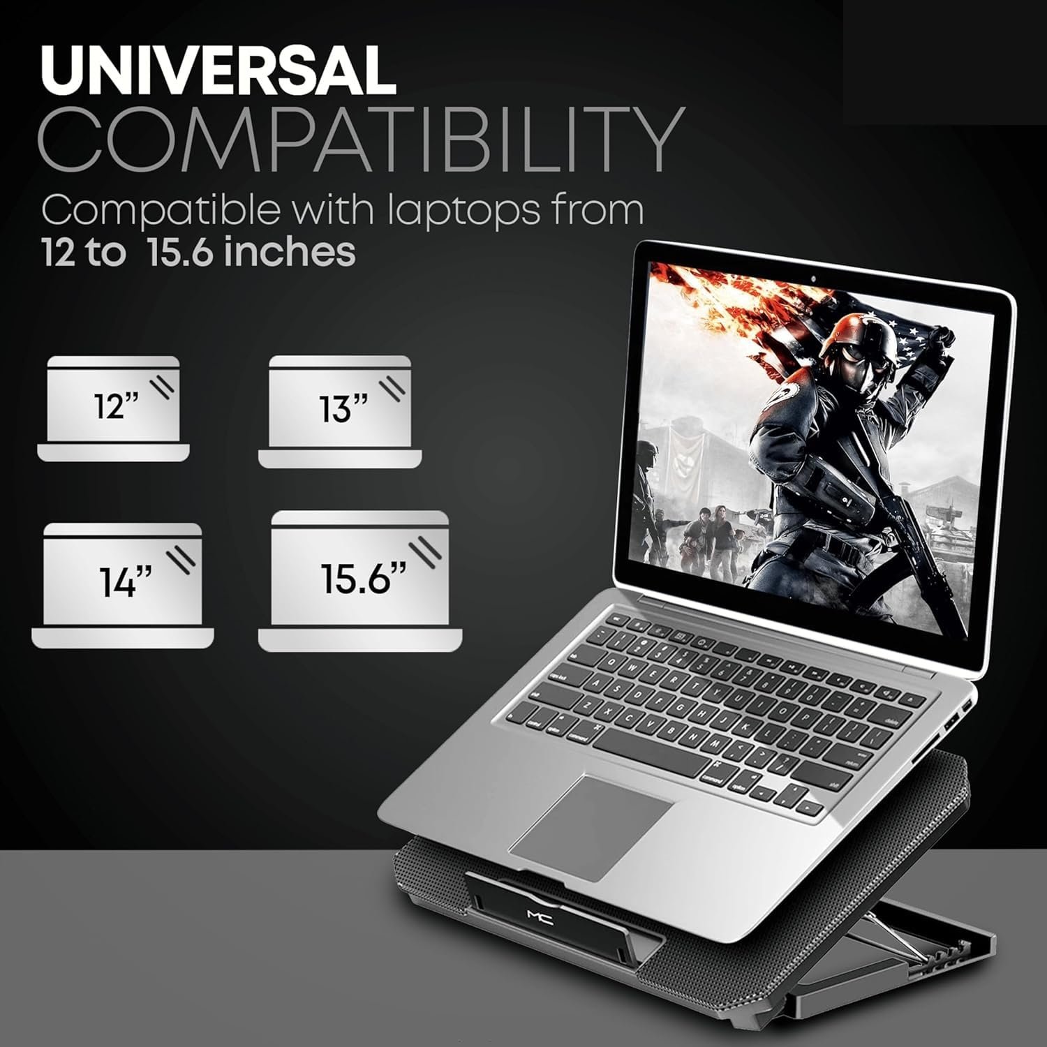 Compatibility: Laptop Cooling Pad effectively compatible with a wide range of laptops, including Apple MacBook Pro Air, HP, Dell, Lenovo, Asus, and all other laptops up to 15.6 inches in size.