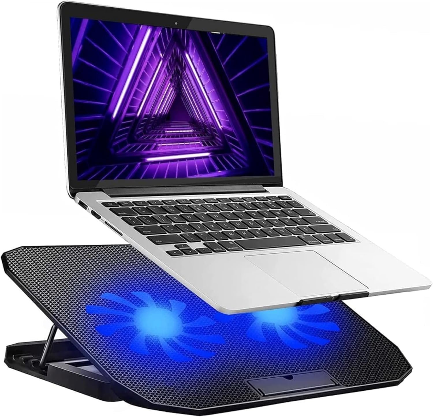 Dyazo Laptop cooler is Featuring 2 high-capacity fans renowned for their exceptional efficiency and ultra-quiet operation. This laptop stand offers 4 inclination angle options to accommodate your preferences and requirements.