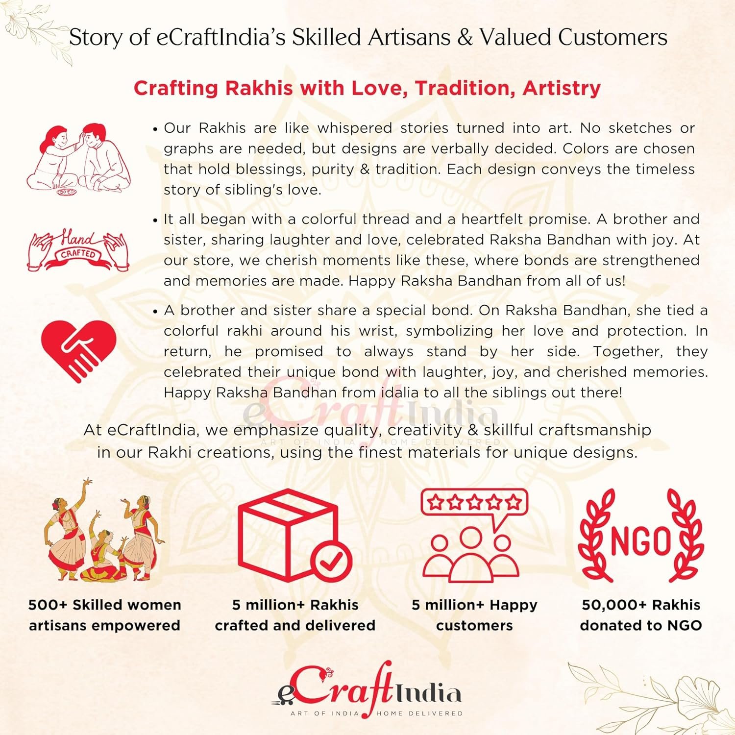 Celebrate Raksha Bandhan with eCraftIndia’s exquisite Designer Rakhis. Elevate the festivities with intricate floral, pearls, and diamond motifs, blending elegance and style perfectly.