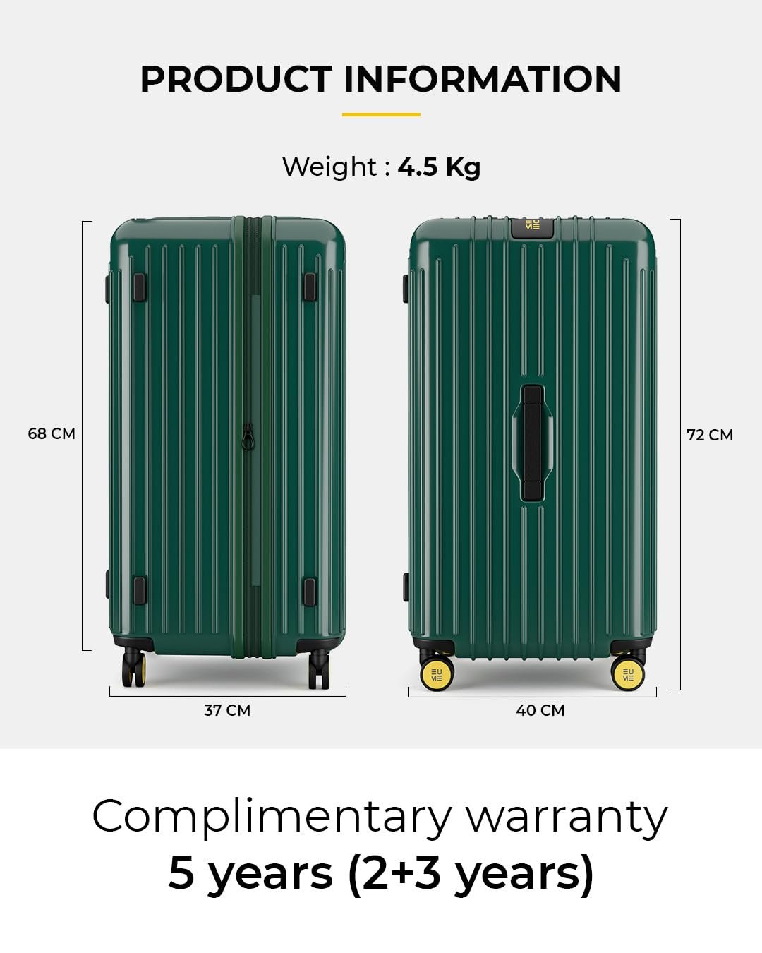 The EUME Trunk suitcase for travel is backed by a 5-Year Warranty against manufacturing defects. Register within 1 month of purchase to extend your complimentary 2-year warranty to a full 5 years for travel trolley bags.
