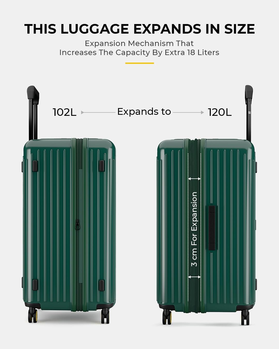 EUME Trunk Check in Trolley Bags for Travel Medium Size | 66cm to 74cm Expandable Trolley Bag | Polycarbonate 8 Silentrun Spinner Wheels Suitcase | Premium Trolley Bags for Travel (Pine Green)