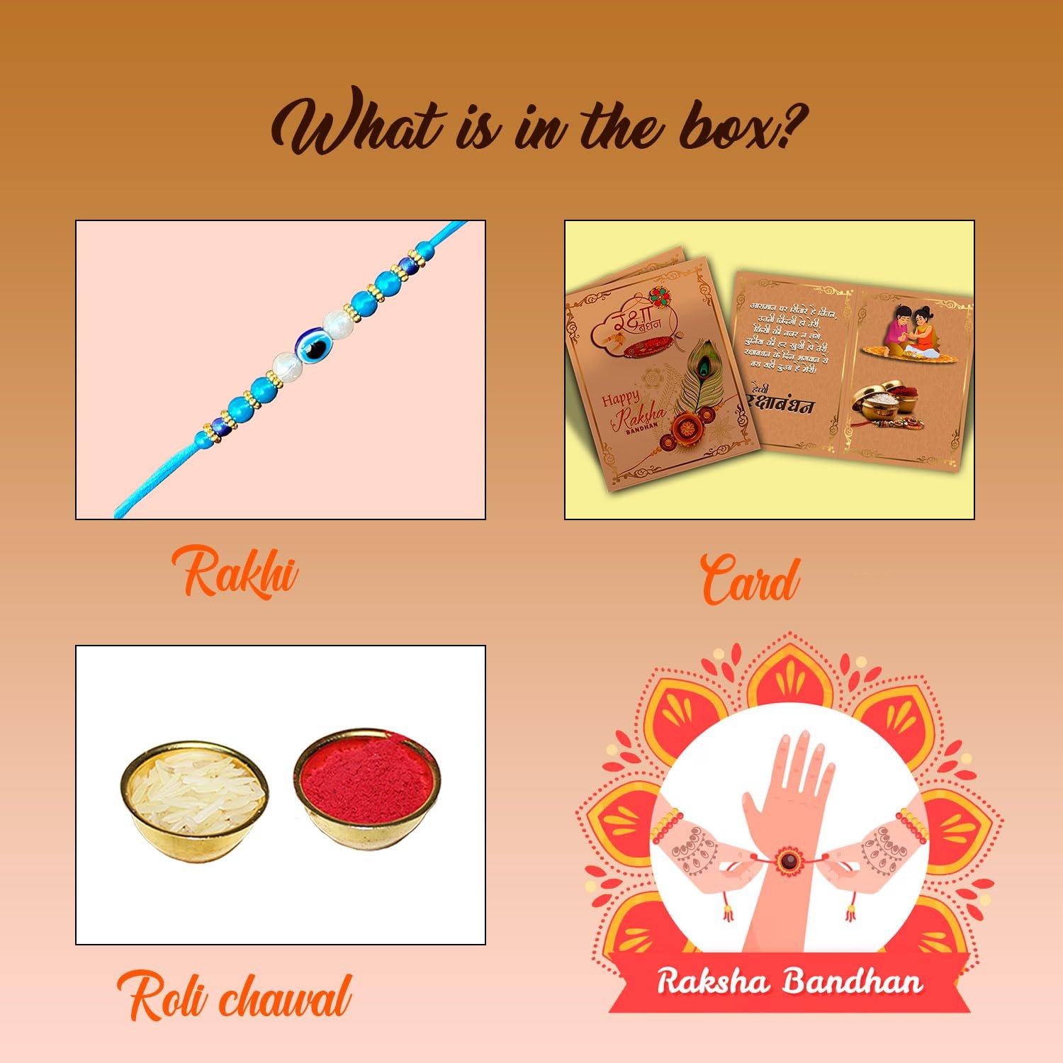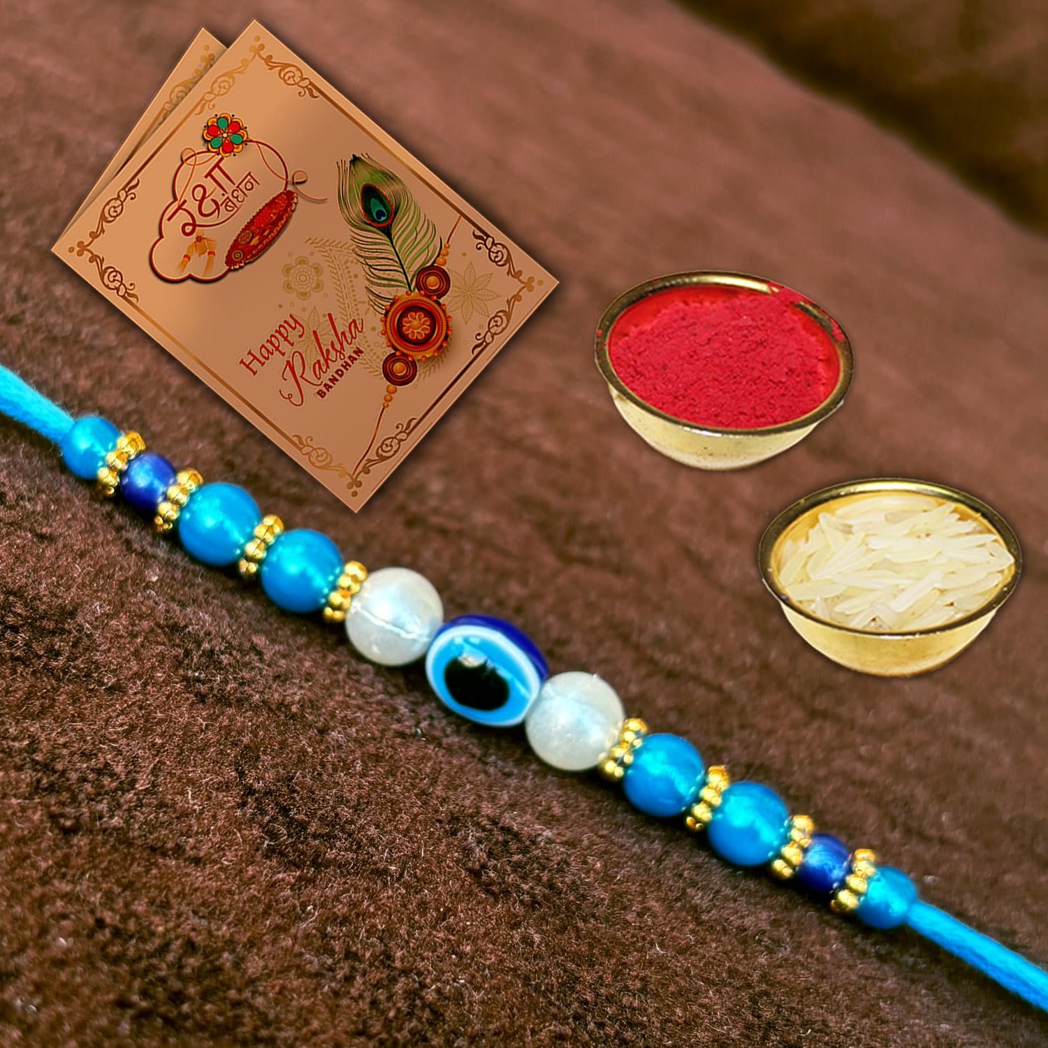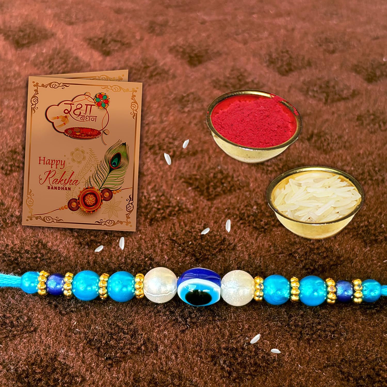 Evil Eye Rakhi Combo With Roli chawal and Rakshabandhan Freeting card For Man(1EV)