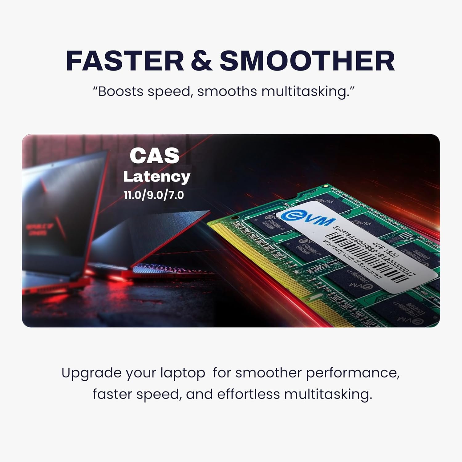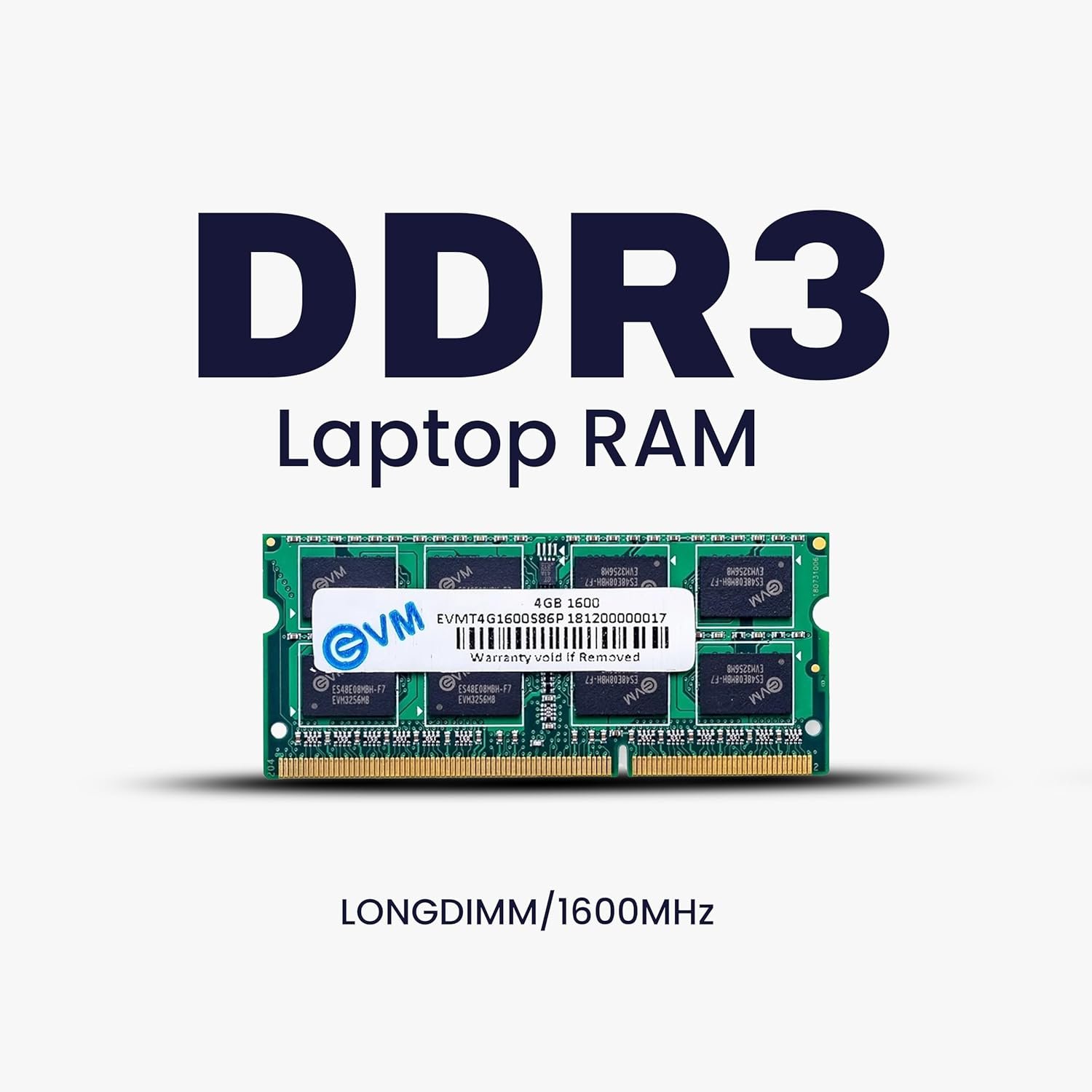 EVM 4GB DDR3 Laptop RAM 1600MHz So-DIMM Memory – High-Speed Performance, Low Voltage Requirement – 10 Year Warranty (EVMT4G1600S86P)