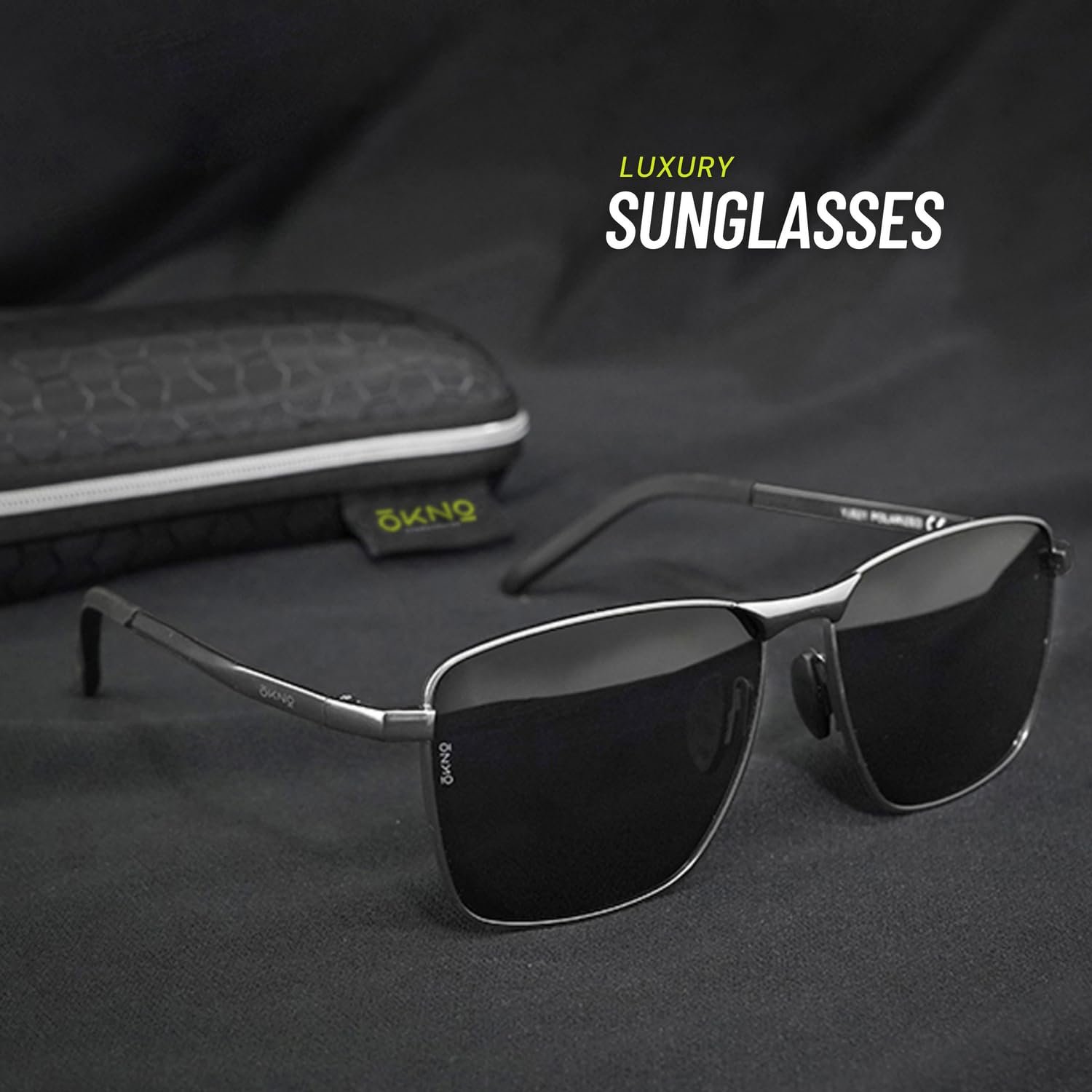 Eyewearlabs OKNO | Polarized Full Rim Alloy Square Branded Stylish Sunglasses For Men & Women | 100% UV Protection Shades | Cricket Sports Cycling Driving | Black Lens | Medium | Surfer