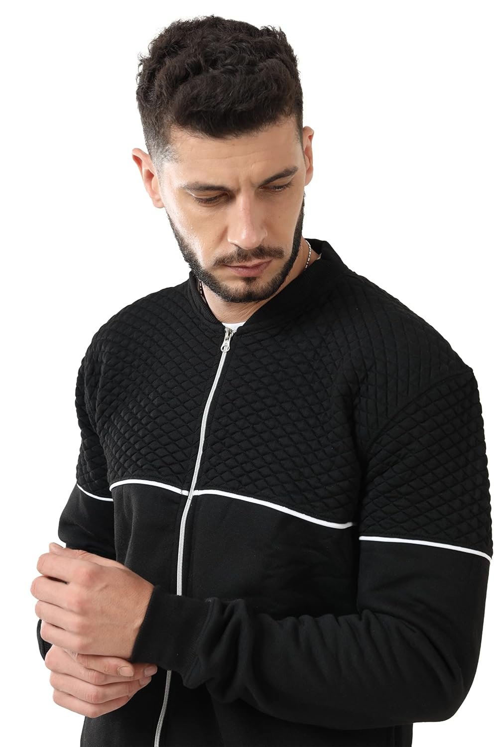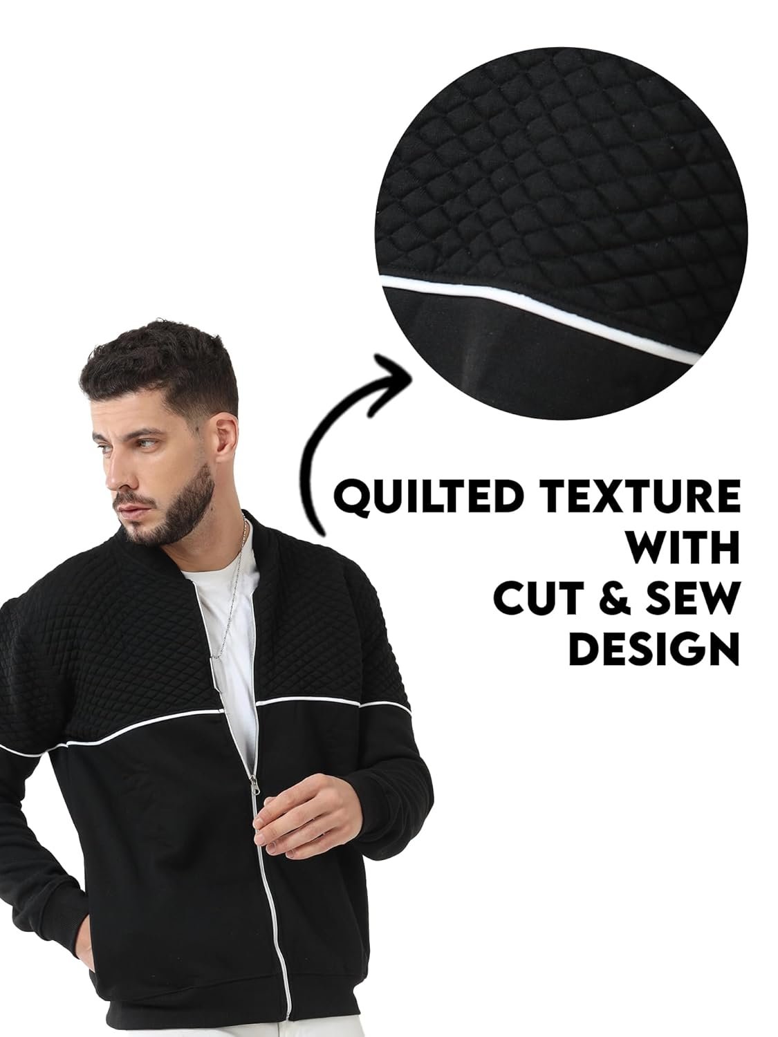 fanideaz Men’s Black Full Sleeve Diamond Cut Bomber Jackets for Men