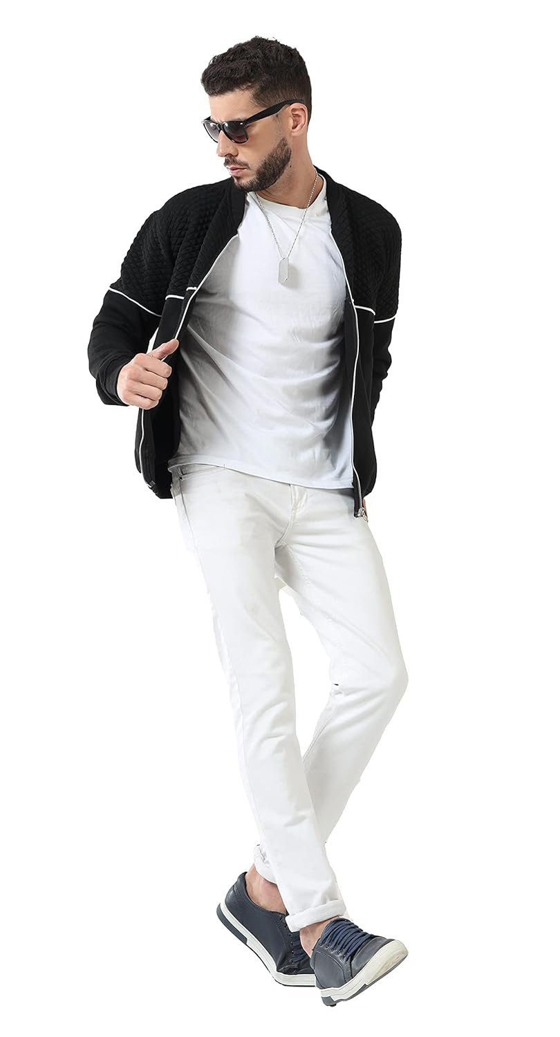 Zipper Jacket with pocketsElastic Rip for Tight closureBest winter wear Jacket for menMade of Black Denim fabricMust have in wardrobe