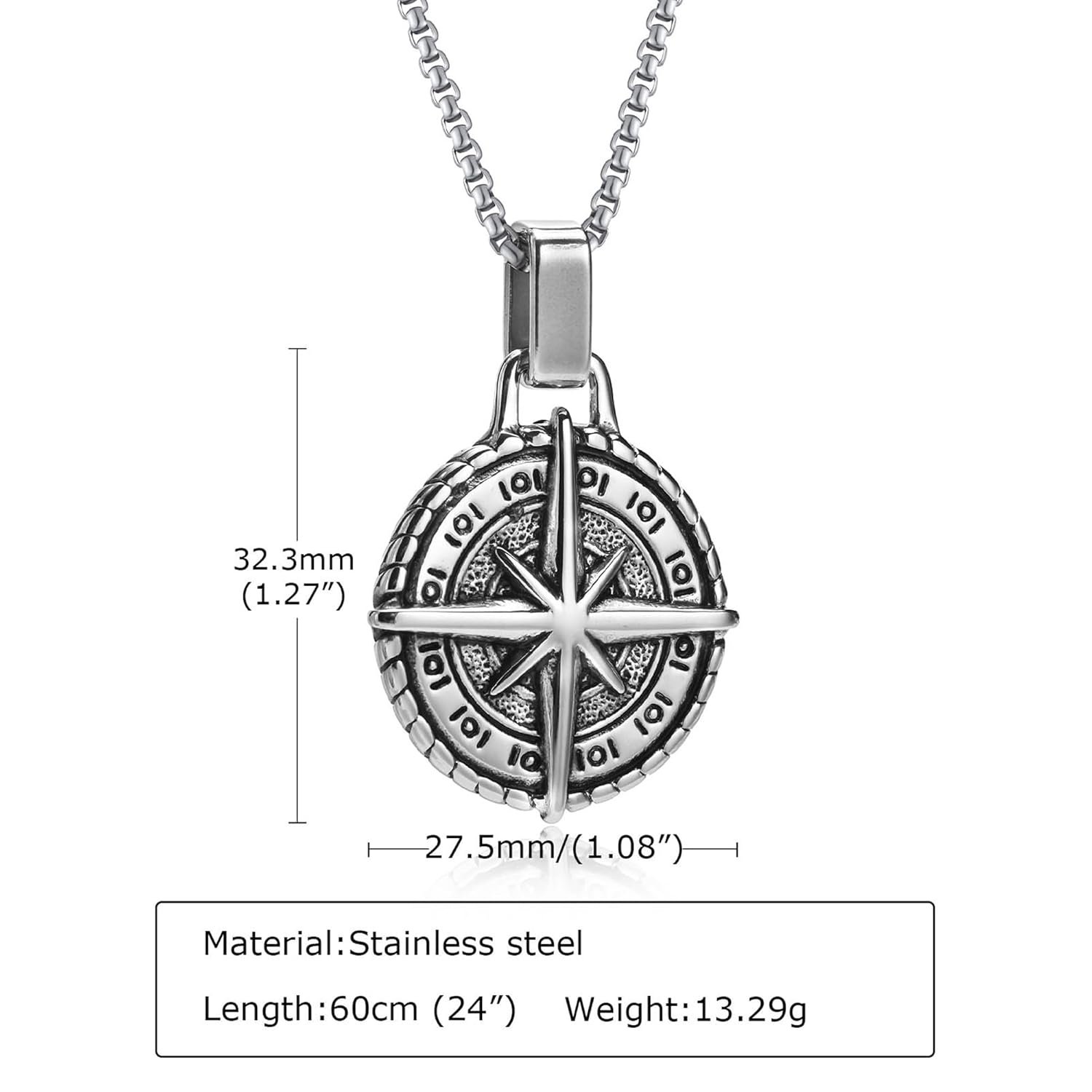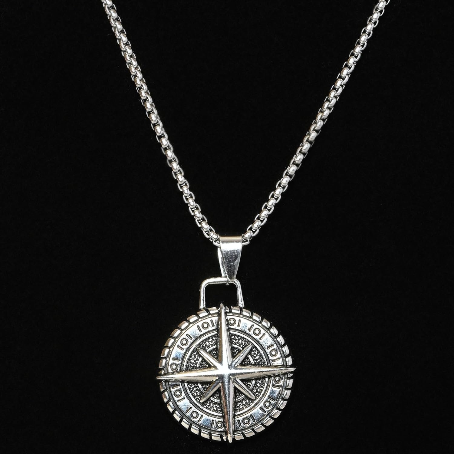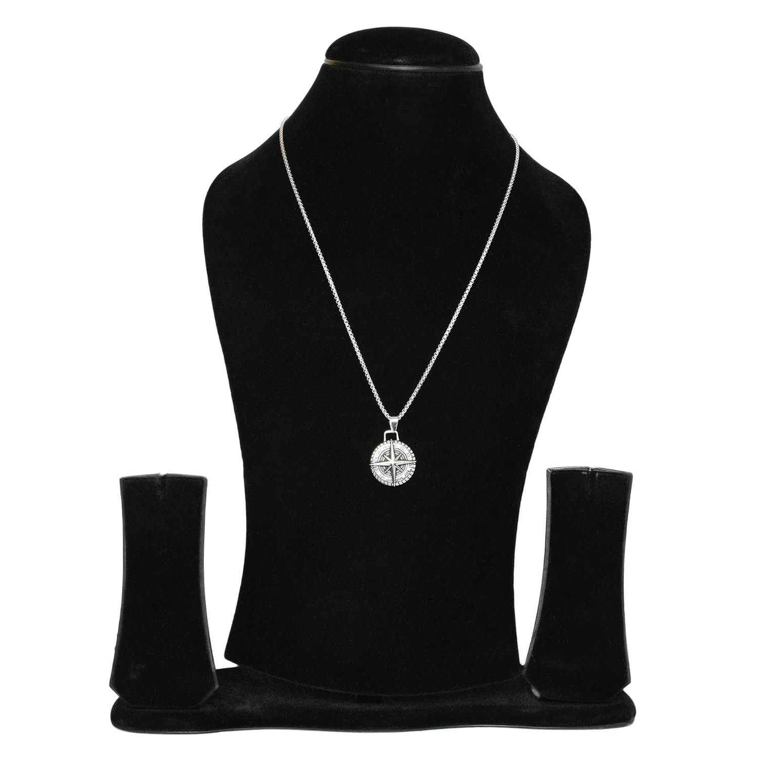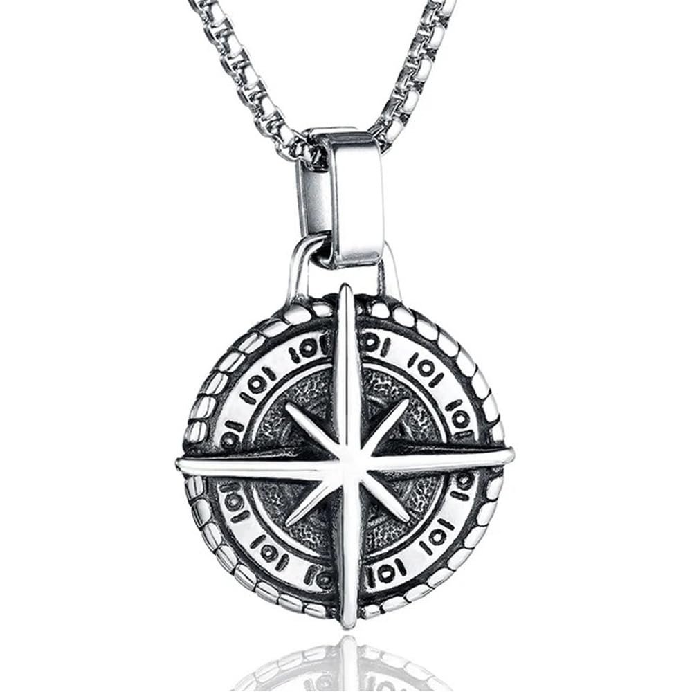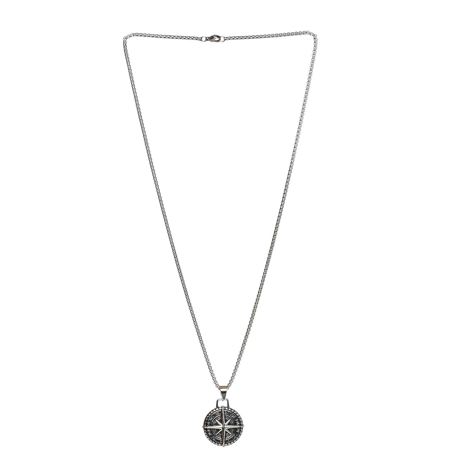 Fashion Frill Silver Chain Pendant For Men Round Pendant Cross Compass Necklace Chain For Men Boys Men’s Jewellery Pendant Necklace Accessories