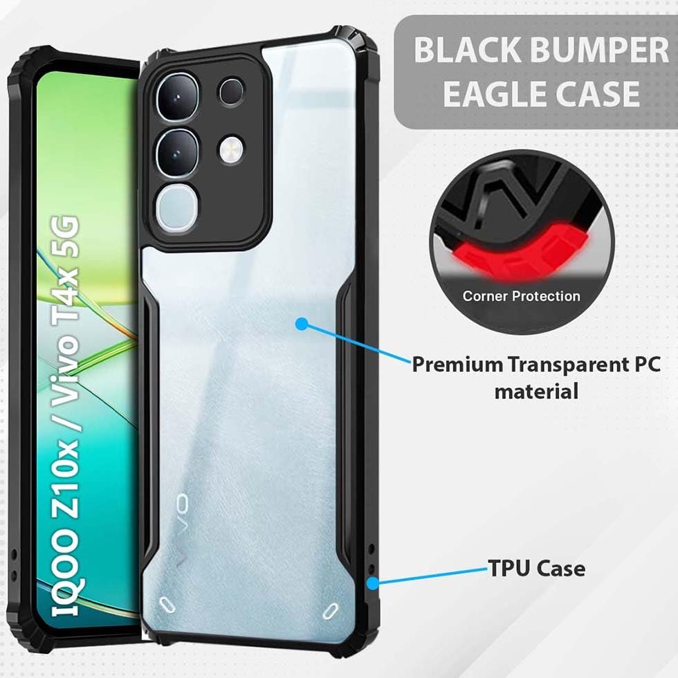 Fashionury Shockproof Crystal Clear Back Cover Case for Vivo T4x 5G / iQoo Z10x 5G / Vivo Y31 Pro 5G | Protective Design | 360 Degree Protection | Transparent Back Case Cover (Black Bumper)