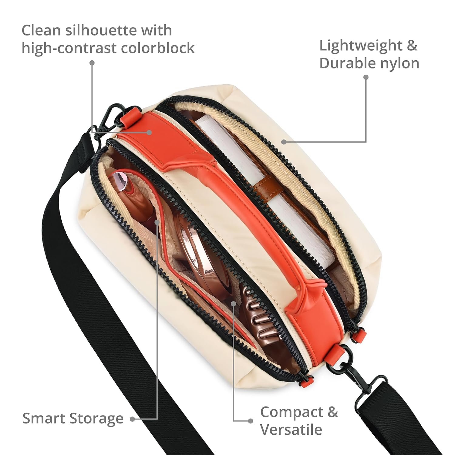 Fastrack Sling Bag for Men & Women | Medium Nylon Sling with Colorblock Design, Zipper Closure, Webbing Strap & Detachable Sling | 2 Compartments with Internal Utility Pockets for Everyday Use