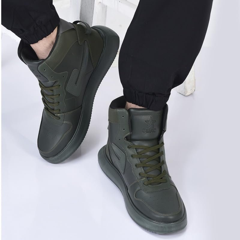 FAUSTO Men’s High Top Chunky Classic Lace Up Sneakers|High Ankle Sneakers with Memory Cushion|Lightweight All Day Sneakers