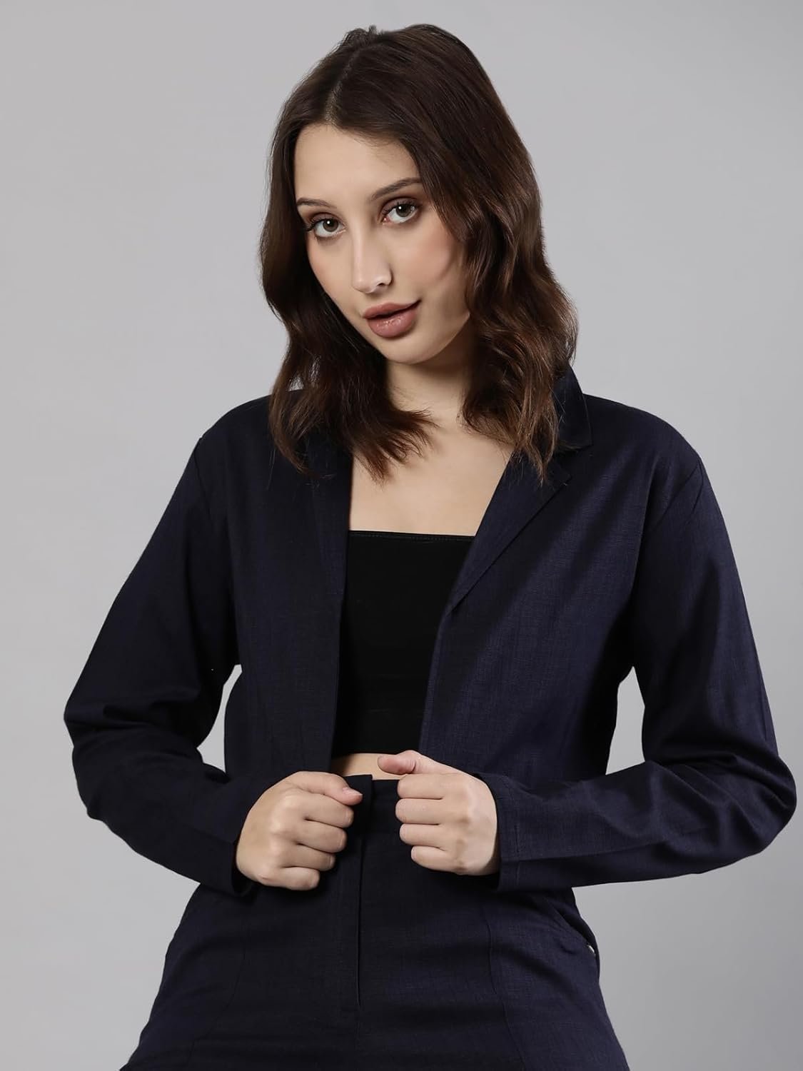 Introducing Femmora’s Co-Ords Set Crop Jacket and Pant—a perfect blend of style and comfort. Crafted from lightweight and breathable cotton, this ensemble offers unparalleled comfort for daily wear.Fashionable yet functional, the set features two pockets in the trousers for added convenience, ensuring you can carry essentials with ease.Femmora’s versatile outfit will elevate your wardrobe effortlessly, seamlessly transitioning from casual outings to more formal settings. Currently available as a pair for easy coordinating, this co-ords set is a must-have addition to your collection.