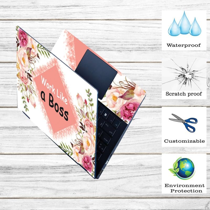 Floral-D15 Top+Wrist Pad Vinyl Laptop Skin/Sticker/Cover for 14 Inches Laptops Laminated-Removable-HD Quality Compatible for Hp-Dell-Sony-Lenovo-Asus etc.(13.8×9.6 Inches)