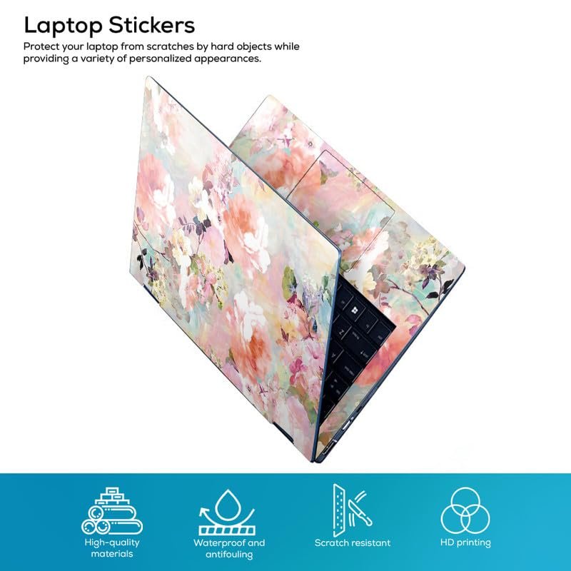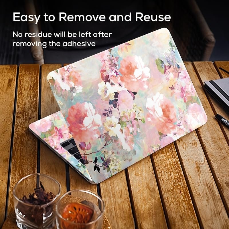 Floral D7 Full Body Vinyl Laptop Skin/Sticker/Cover Upto 15.6 Inches Laptops Laminated-Removable-HD Quality Compatible for Hp-Dell-Sony-Lenovo-Asus etc.(15×10 Inches)