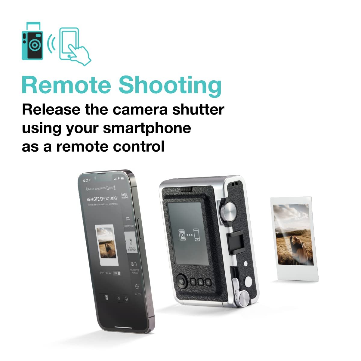 Save printed images onto your Smartphone – Requires download of free INSTAX MINI EVO App – Control the INSTAX MINI EVO camera with your Smartphone for remote shooting – Print photos from your Smartphone via Bluetooth